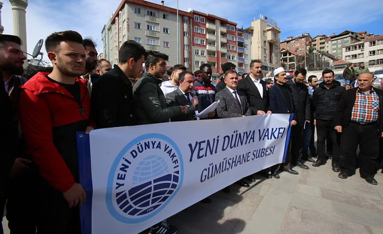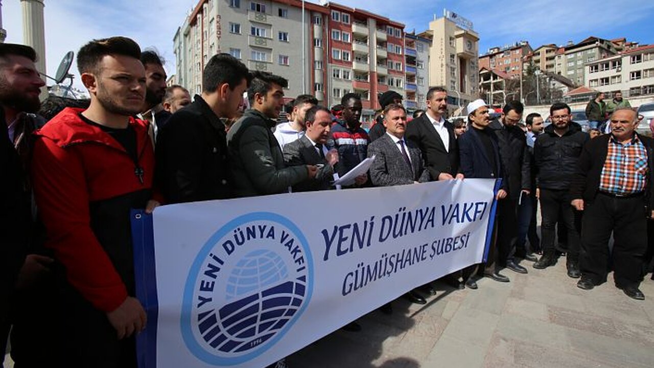 15 Temmuz Zafer Meydanında düzenlenen basın açıklamasına Gümüşhane Belediye Başkanı Ercan Çimen, Yeni Dünya Vakfı Gümüşhane Şube Başkanı Temel Özen, üniversite öğrencileri ve vatandaşlar katıldı.