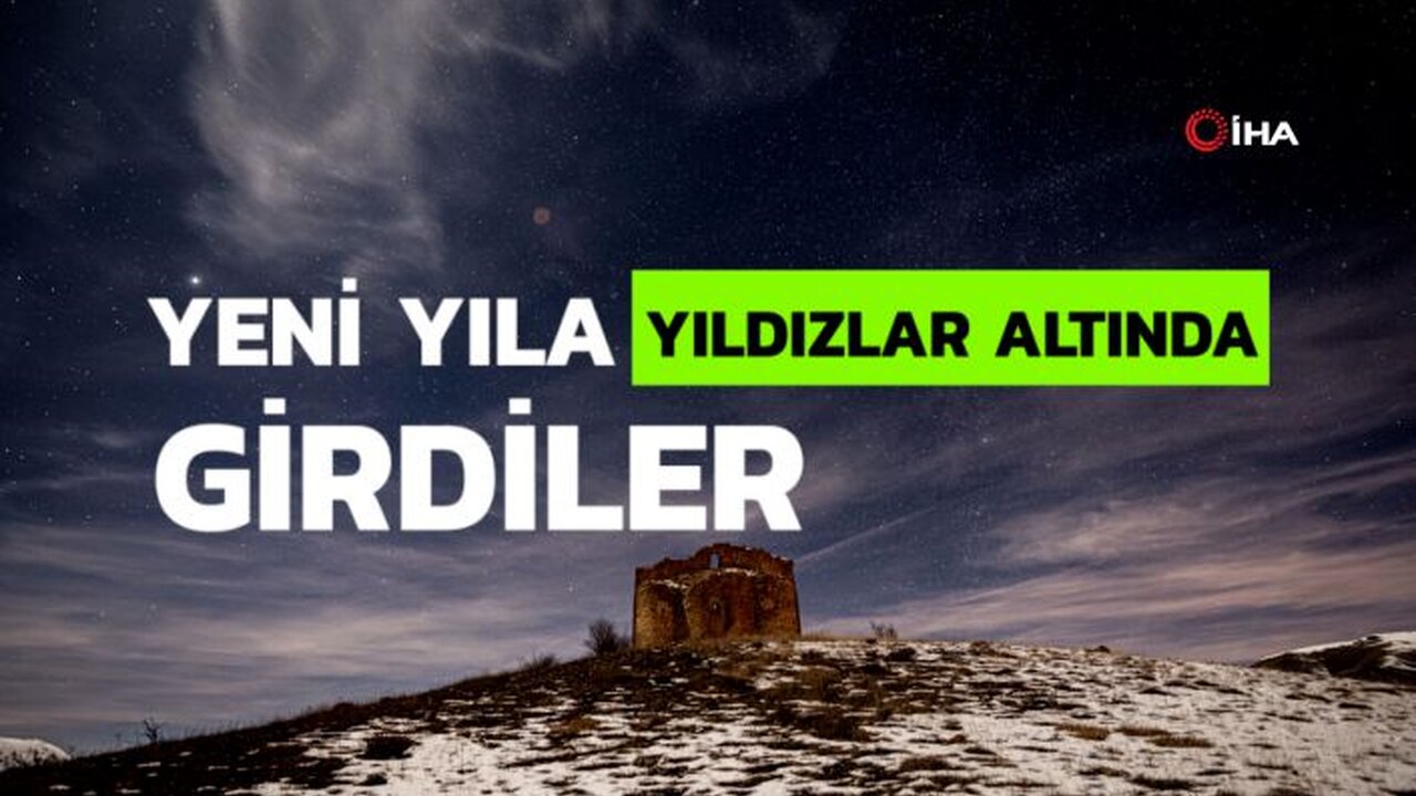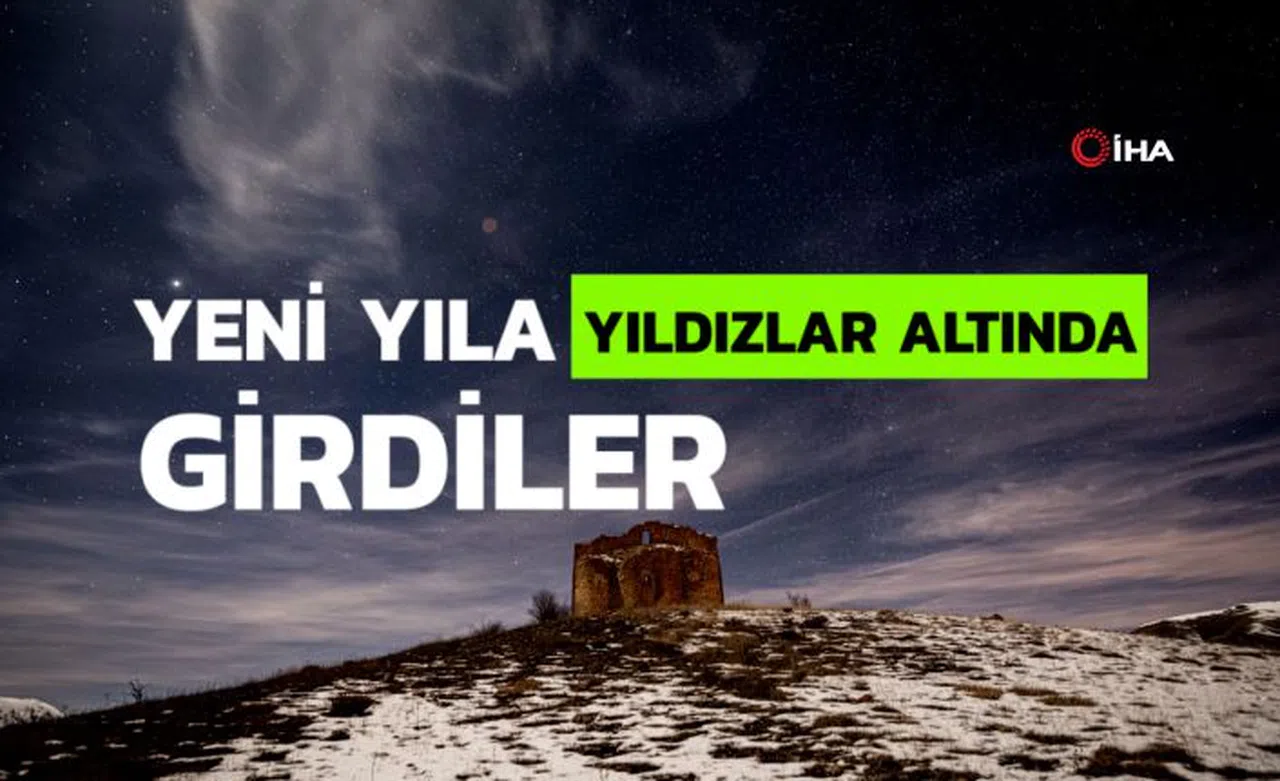 Dondurucu soğuğa rağmen uzun zamandır planladıkları yıldız fotoğraflarını çekmek için Giresun’dan Gümüşhane’nin Merkeze bağlı Yağlıdere köyü sınırlarındaki Krom Antik Kentine karlı yolları aşarak gelen fotoğraf sanatçıları Engin Ayyıldız ve Hakan Aydın yeni yıla burada girdi.