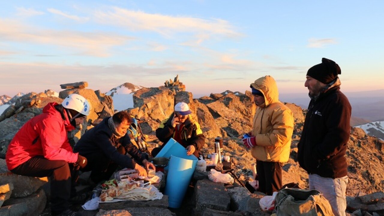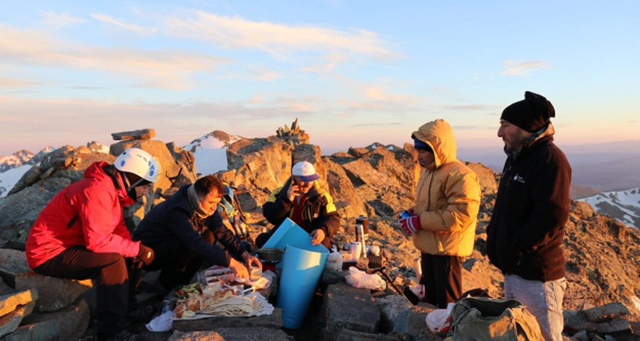 Burada zirve defterine hatıra yazarak tek tek imzalayan sporcular daha sonra bu yıl 6.sını düzenledikleri zirve iftarının hazırlıklarına başladı. Sırt çantalarıyla 4,5 kilometre boyunca taşıdıkları yiyeceklerden taş üzerinde sofra yapan sporcular teknik malzemeler yardımıyla su kaynatarak kendilerine çorba ve çay yaptı.