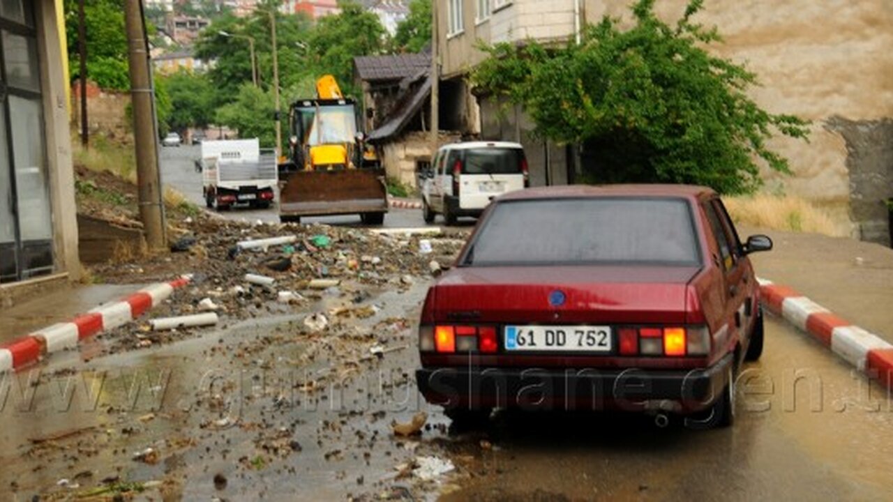 Gümüşhane’de bugün akşam saatlerinde başlayan etkili yağmur ve dolu yağışı yine bilindik manzaraları ortaya çıkardı.