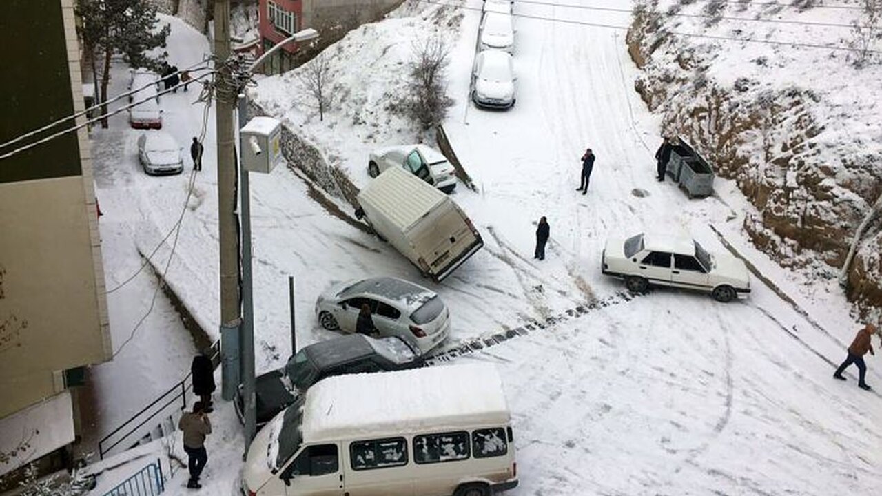 Gümüşhane’de yağışla birlikte havanın soğuk olması nedeniyle buzlanan yollar çok sayıda kazanın gerçekleşmesine sebep oldu. Dere yatağına kurulu şehir merkezinde yamaçlardaki mahallelerde yaşayan vatandaşlar araçlarıyla birlikte dik rampaları inmekte oldukça zorlandı.
