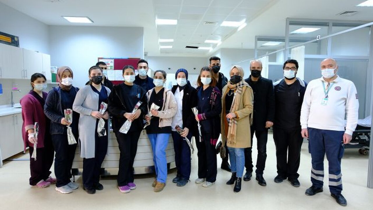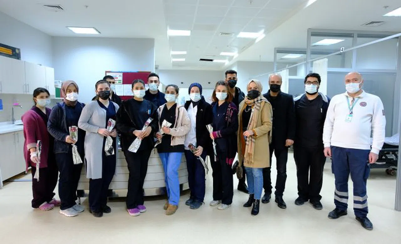 İlk olarak Acil Servis doktor ve hemşirelerine göstermiş oldukları fedakarlıklar ve emekleri için teşekkür eden derneğin Disiplin Kurulu Başkanı Hüseyin Kullukçu ve dernek üyeleri daha sonra tüm poliklinikleri gezerek tek tek tüm hastane personeline çiçeklerini takdim etti.
