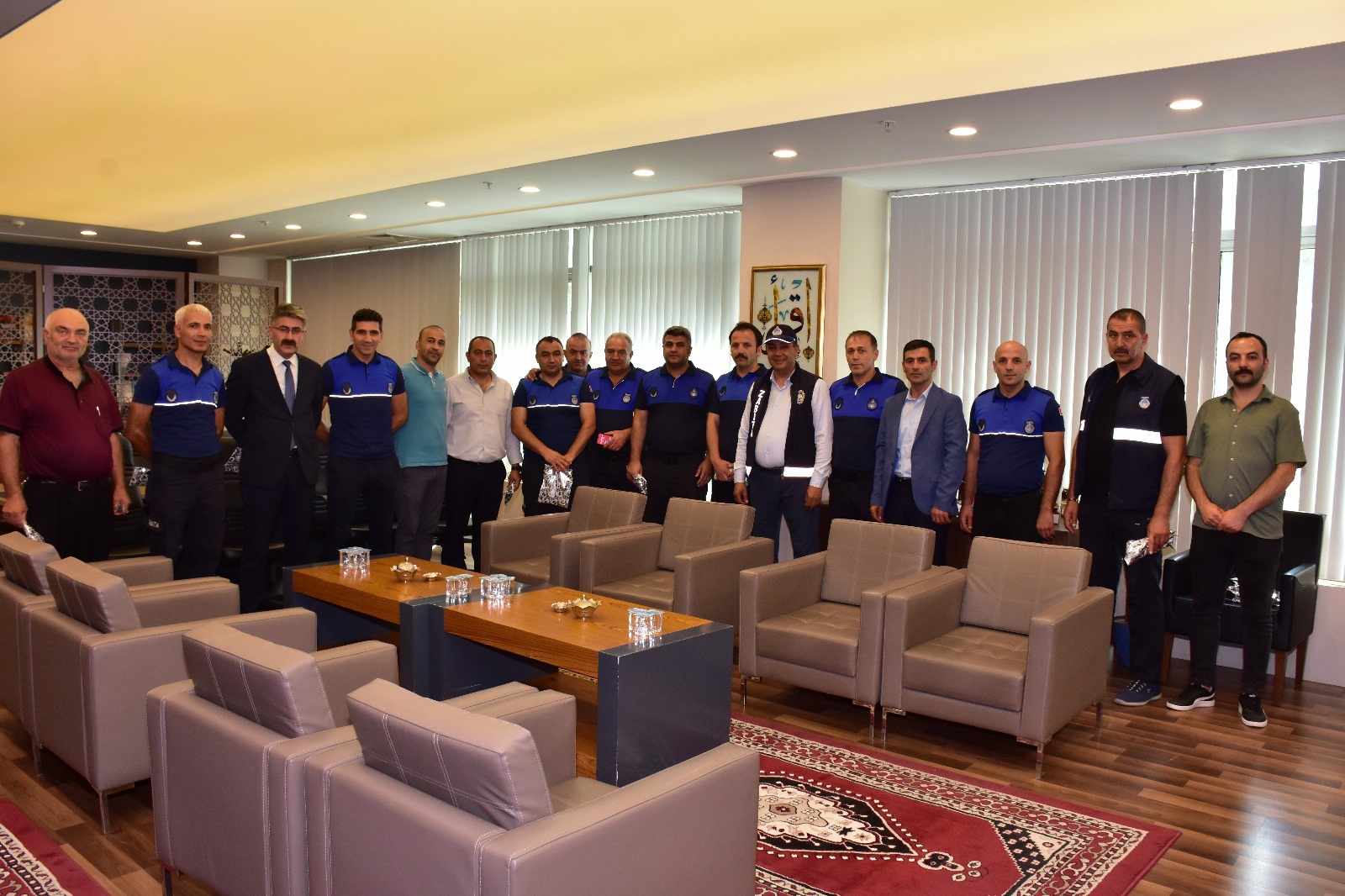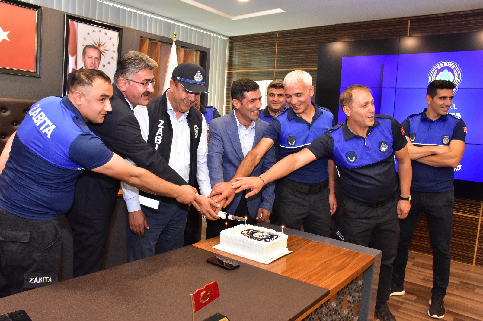 Zabıta Müdürlüğüne bağlı ekipler şehrin genelinde düzenlediği kortej geçişinin sonrasında Başkanlık makamına geldiler. Belediye zabıta personelini makamında karşılayan Başkan Başer, tüm zabıta personeli ile tek tek selamlaşarak günün anısına pasta kesti.