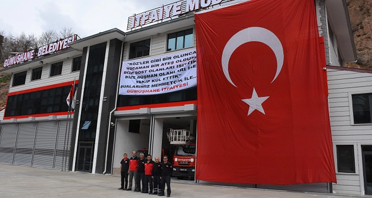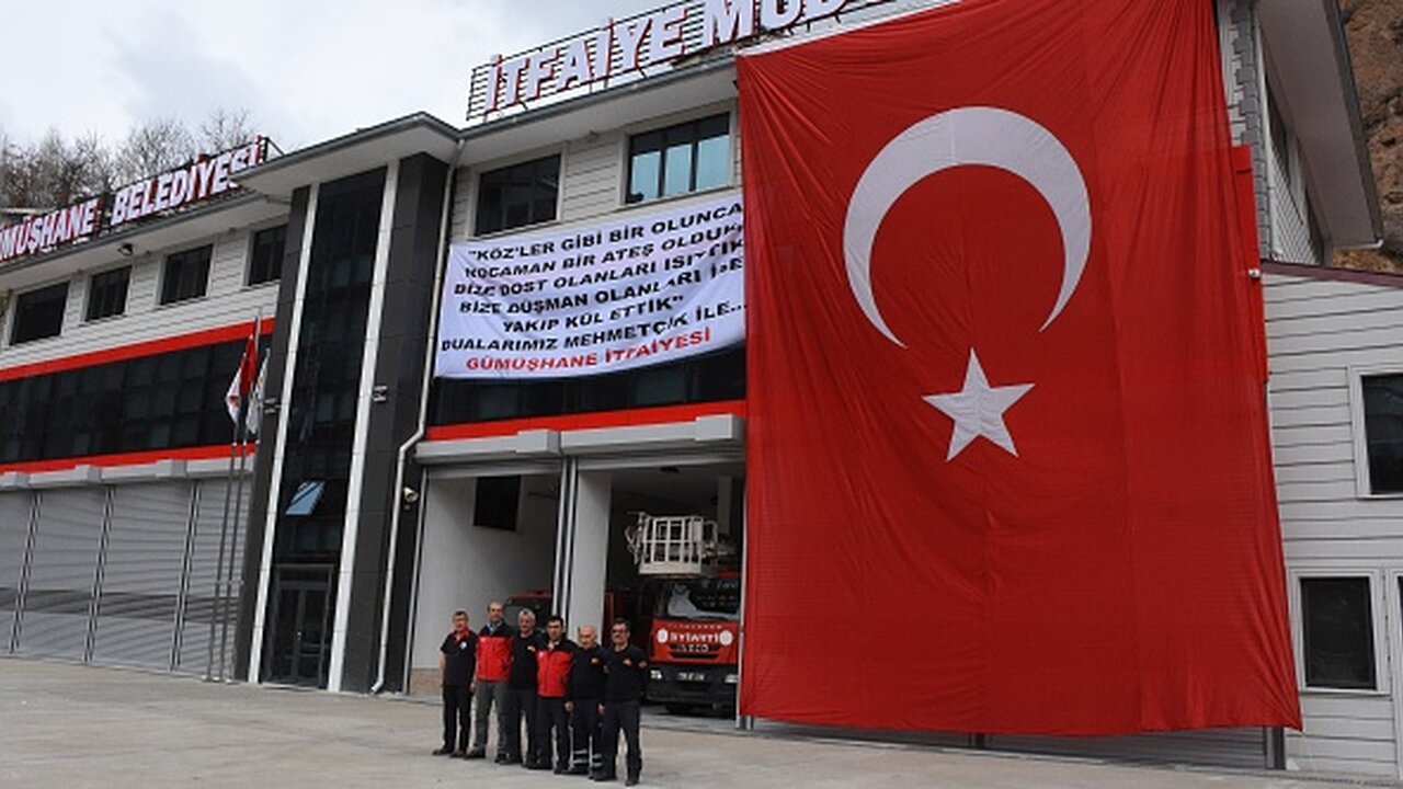 Gümüşhane Belediyesi İtfaiye Müdürlüğü, yeni yapılan hizmet binasına dev Türk bayrağı asarak Zeytin Dalı Harekatı'na katılan askerlere destek oldu.