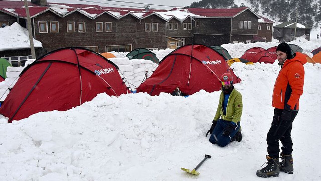 Türkiye Dağcılık Federasyonunun Zigana dağında düzenlediği temel kış eğitimine katılan dağcılar ağır kış şartlarında hayatta kalmayı öğreniyorlar. Kardan duvarlar örüp, çadır kurarak hayatlarını burada sürdüren sporcuları ilk gece fırtına vurdu, 3 çadır patladı.
