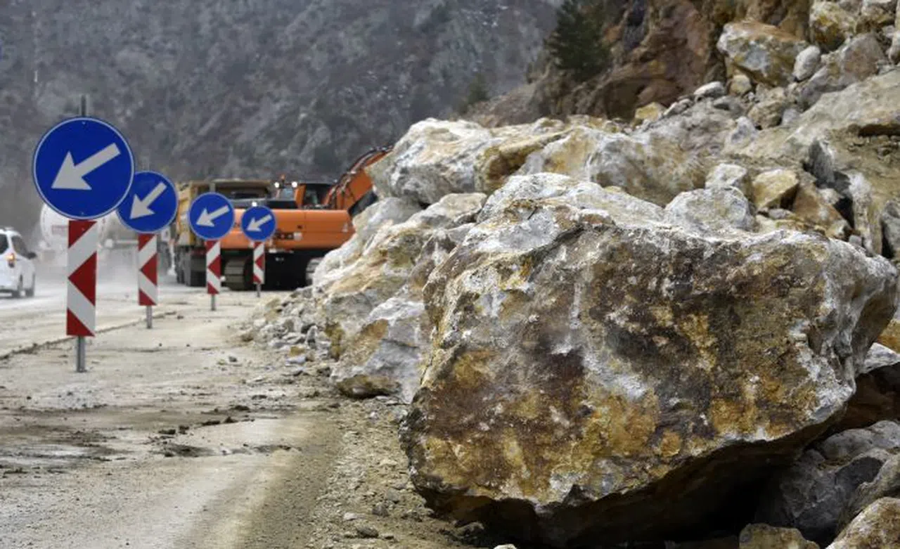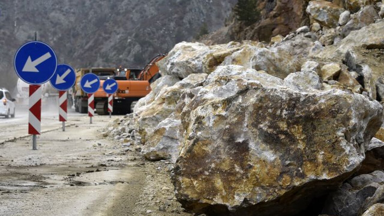 Gümüşhane-Trabzon karayolunun Zigana Dağı mevkiinde dün gece yaşanan heyelanda dev kayalar yola düştü. Heyelan sonucu 3 şeritli yolun 2 şeridi ulaşıma kapanırken, heyelanın ardından iş makineleri yardımı ile yoldaki kayalar kamyonlara yüklenerek yol temizleniyor.