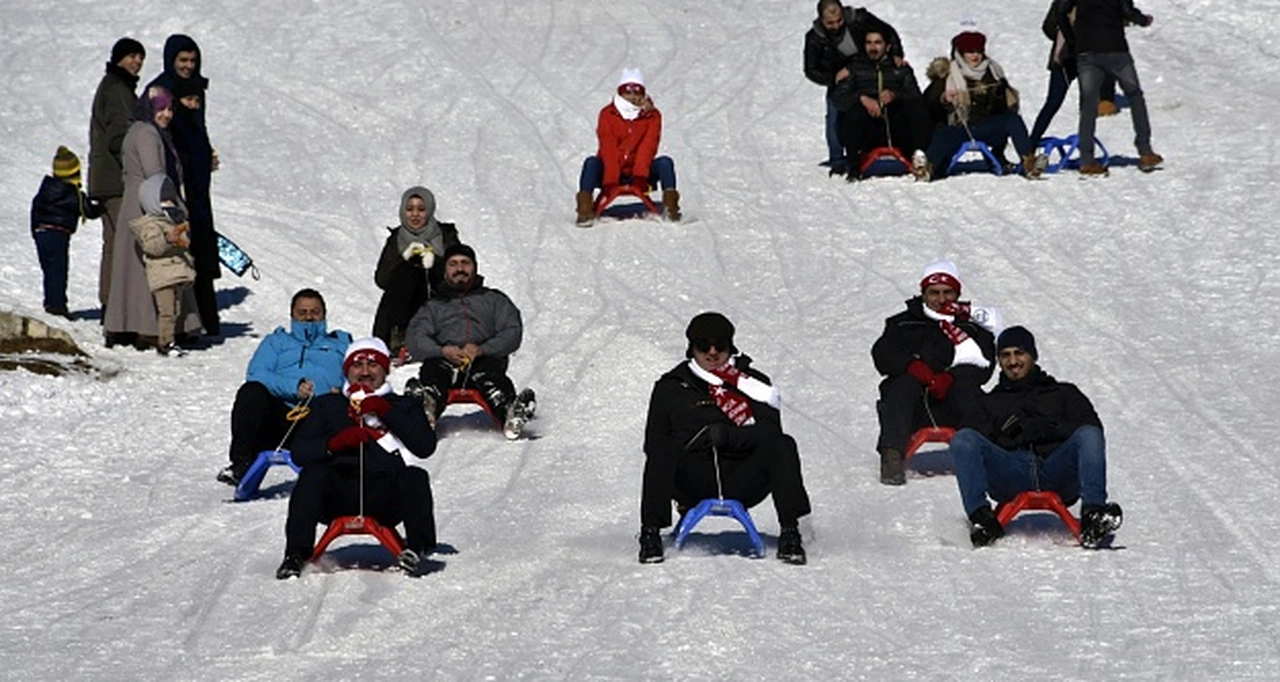 Gümüşhane Valisi Okay Memiş, beraberinde Belediye Başkanı Ercan Çimen, Gümüşhane Üniversitesi Rektörü Prof.Dr. Halil İbrahim Zeybek, İl Emniyet Müdürü Ömer Faruk Karataş, Gençlik Hizmetleri ve Spor İl Müdürü İsrafil Aslan’la birlikte Zigana Gümüşkayak Kayak Merkezinde kızakla kaydı. Birkaç kez zirveye çıkarak kızakla hızla aşağı inen protokol üyelerini vatandaşlar şaşkınlık içerisinde izledi.