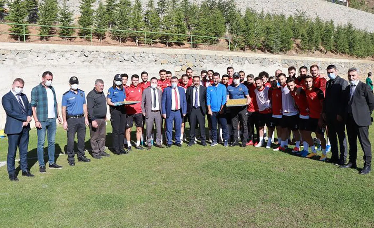 Kulübün Tekke köyündeki tesislerinde teknik heyet ve futbolcuları antrenman sırasında ziyaret ederek tatlı ikram eden İl Emniyet Müdürü Taşci ve heyeti, başarı dileklerinde bulundu.