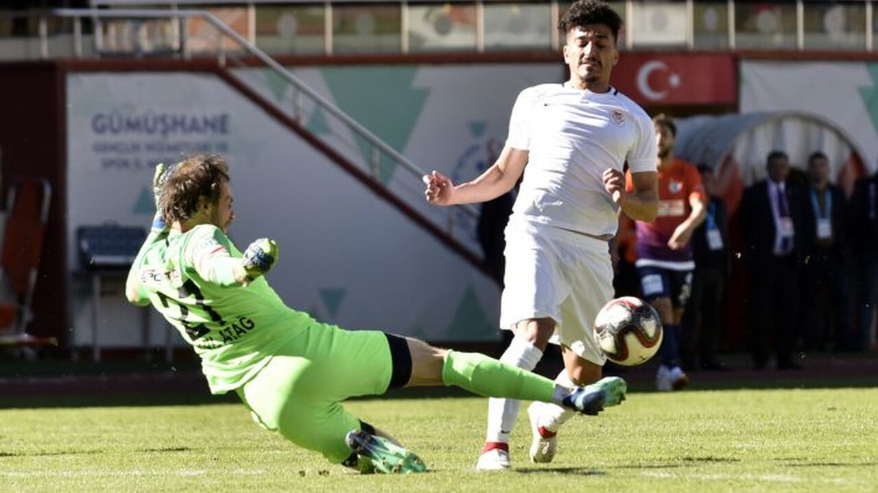 32.dakikada sağ kanattan hızlı gelişen Gümüşhanespor kontra atağında Mehmet Menderes Önkuzu’nun yerden sert ortasında, arka direkte topla buluşan Tugay Özcan’ın yerden vuruşunu kaleci Anıl Atağ ayaklarıyla uzaklaştırarak mutlak bir golü önledi.