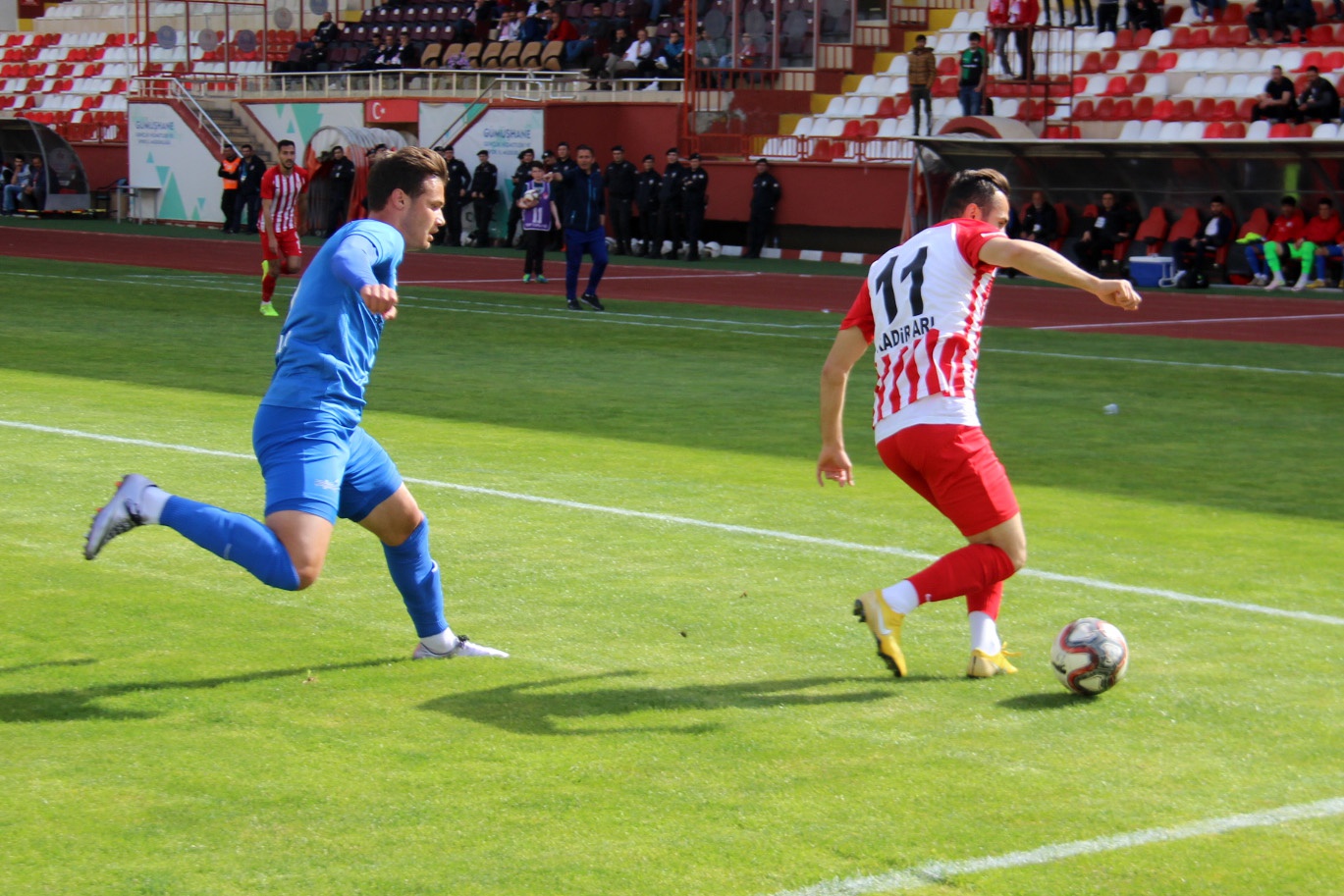 55.dakikada Gümüşhanespor gole çok yaklaştı. Mehmet Cansın Çiçek’in kendi yarı sahasından uzun pasında bir anda defansın arkasına sarkan Tekin Adar, kaleciyle karşı karşıya kaldığı pozisyonda topa iyi vuramayınca, top farklı şekilde üstten auta gitti.