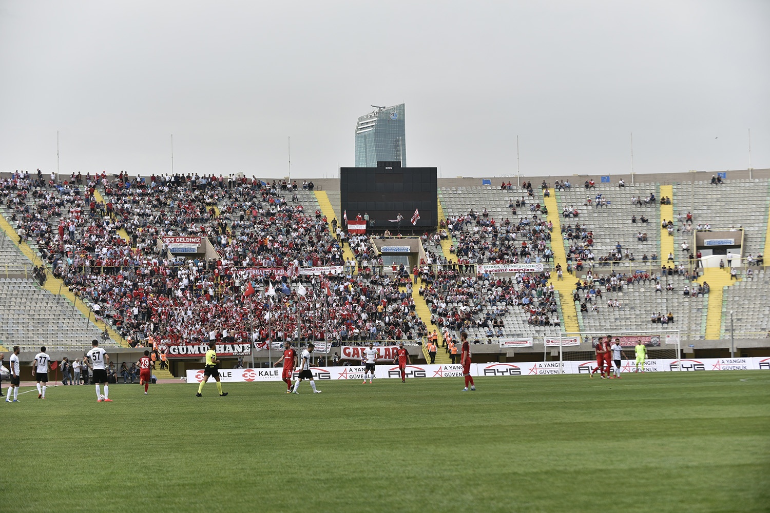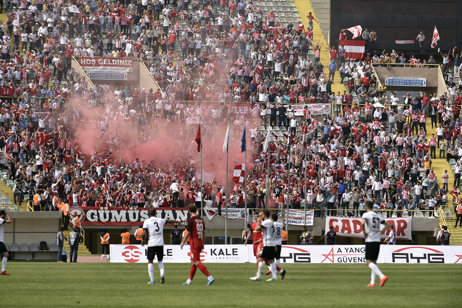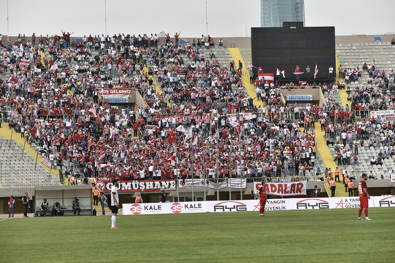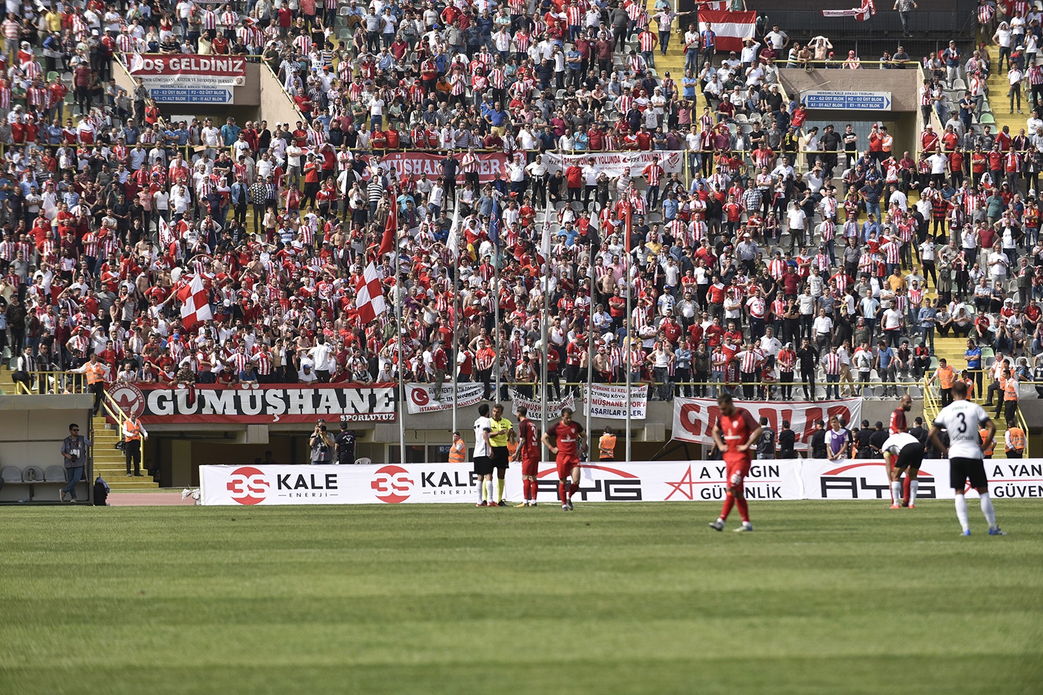 Oldukça sıcak bir havada ve yoğun taraftar baskısı altında oynanan müsabakayı Vali Okay Memiş, Belediye Başkanı Ercan Çimen, GTSO Başkanı İsmail Akçay, başta olmak üzere binlerce Gümüşhaneli izledi.