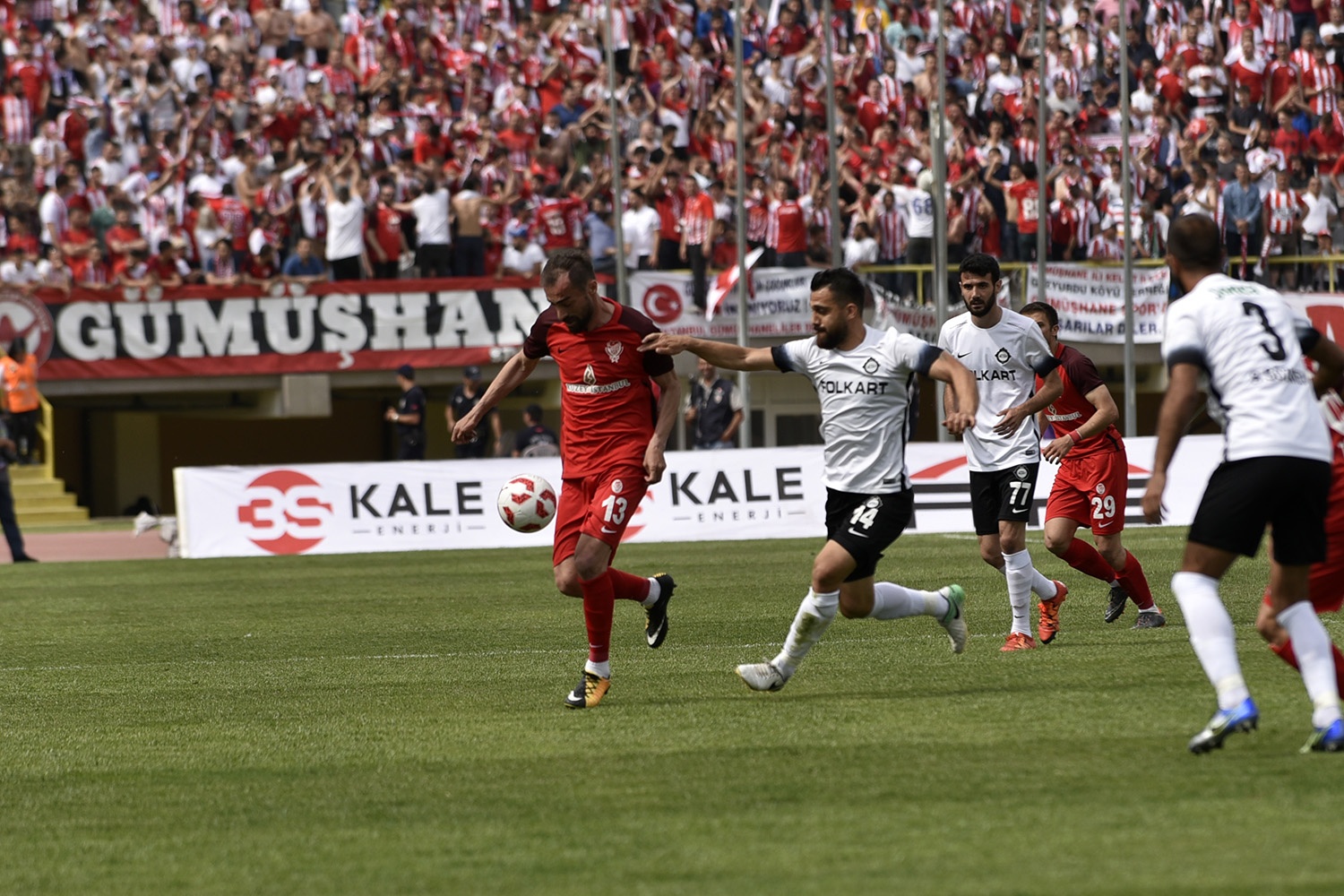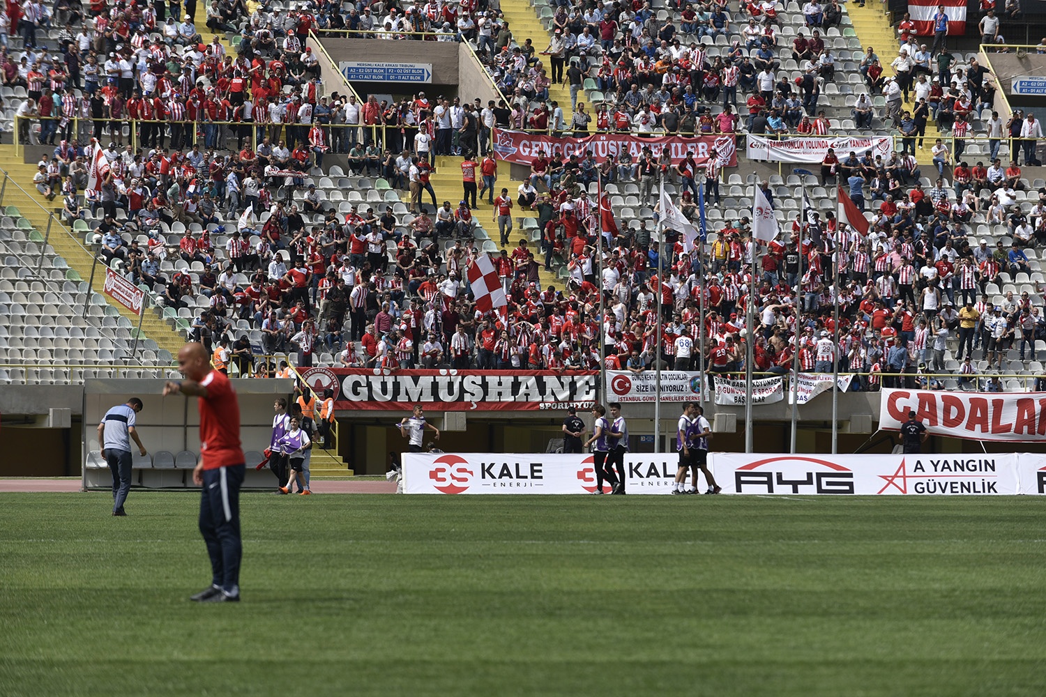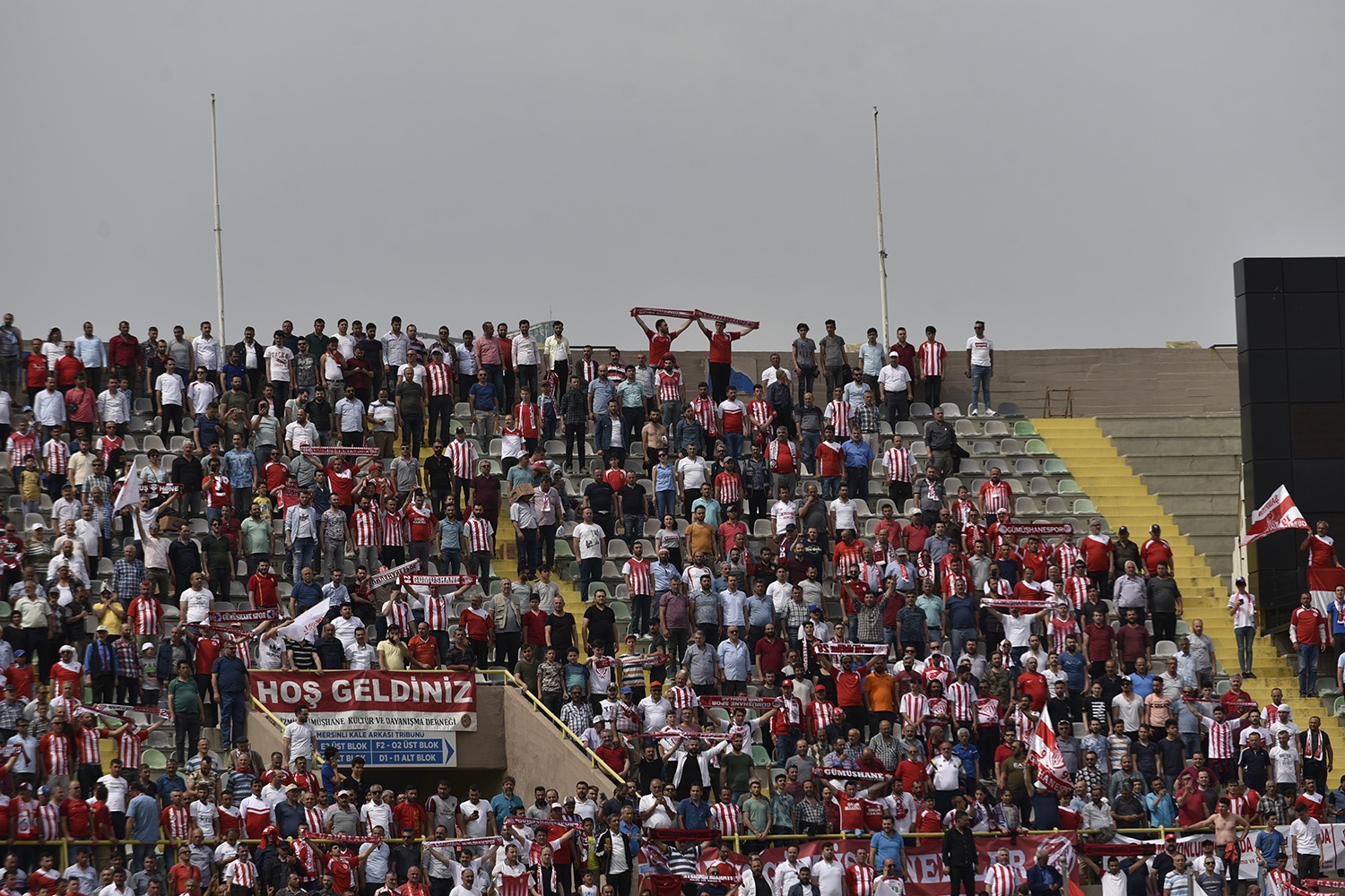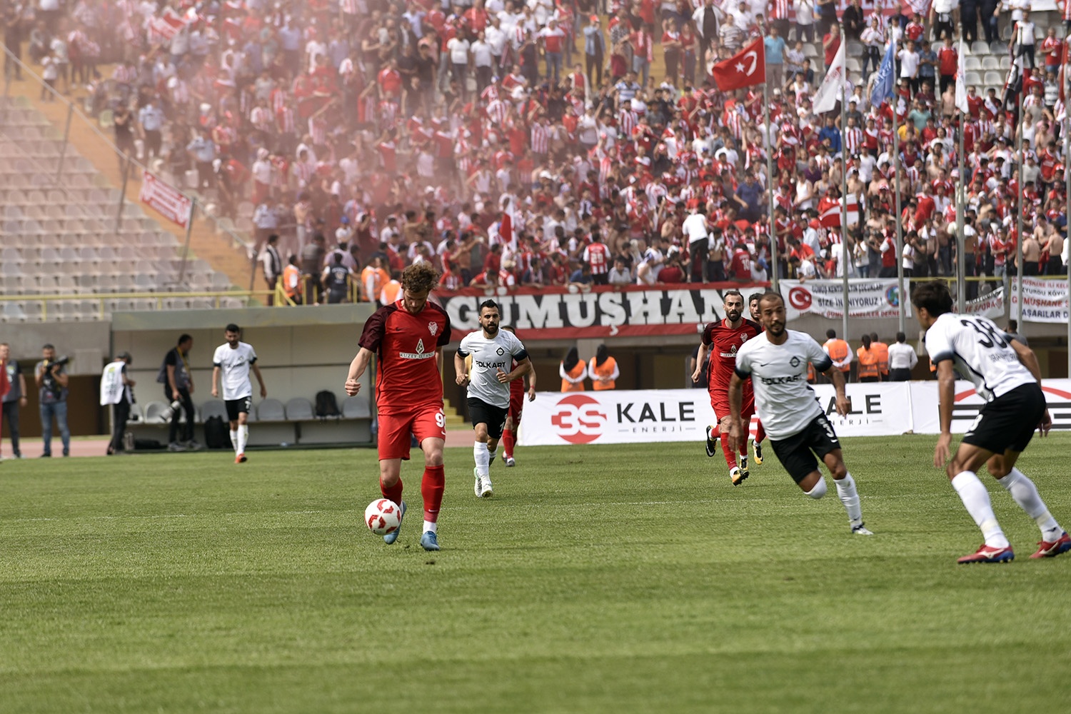 Oldukça sıcak bir havada ve yoğun taraftar baskısı altında oynanan müsabakayı Vali Okay Memiş, Belediye Başkanı Ercan Çimen, GTSO Başkanı İsmail Akçay, başta olmak üzere binlerce Gümüşhaneli izledi.