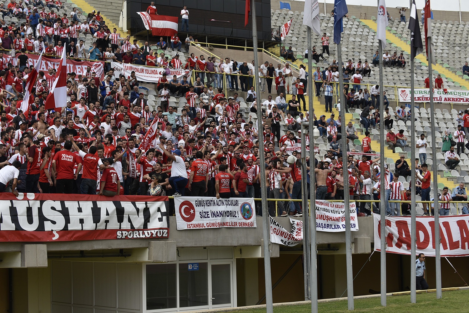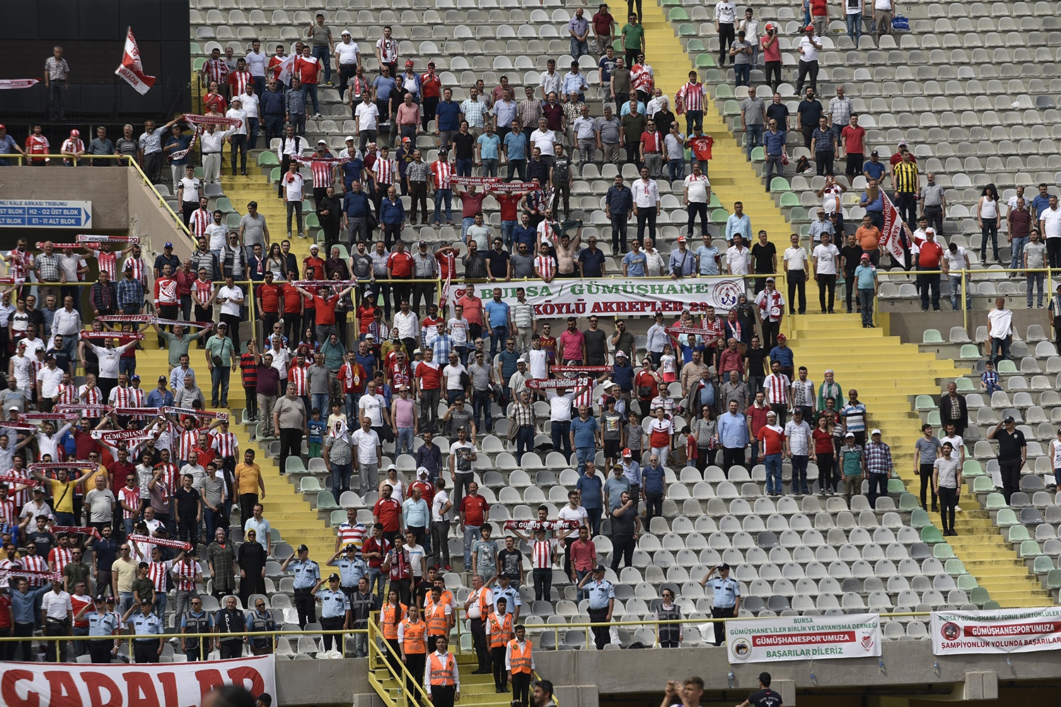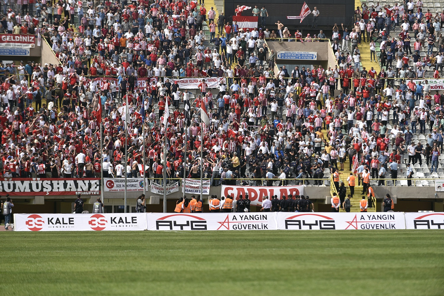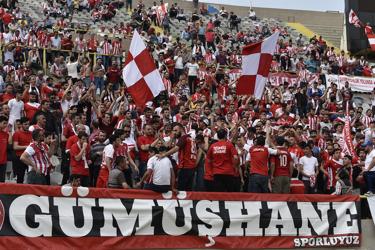 Oldukça sıcak bir havada ve yoğun taraftar baskısı altında oynanan müsabakayı Vali Okay Memiş, Belediye Başkanı Ercan Çimen, GTSO Başkanı İsmail Akçay, başta olmak üzere binlerce Gümüşhaneli izledi.