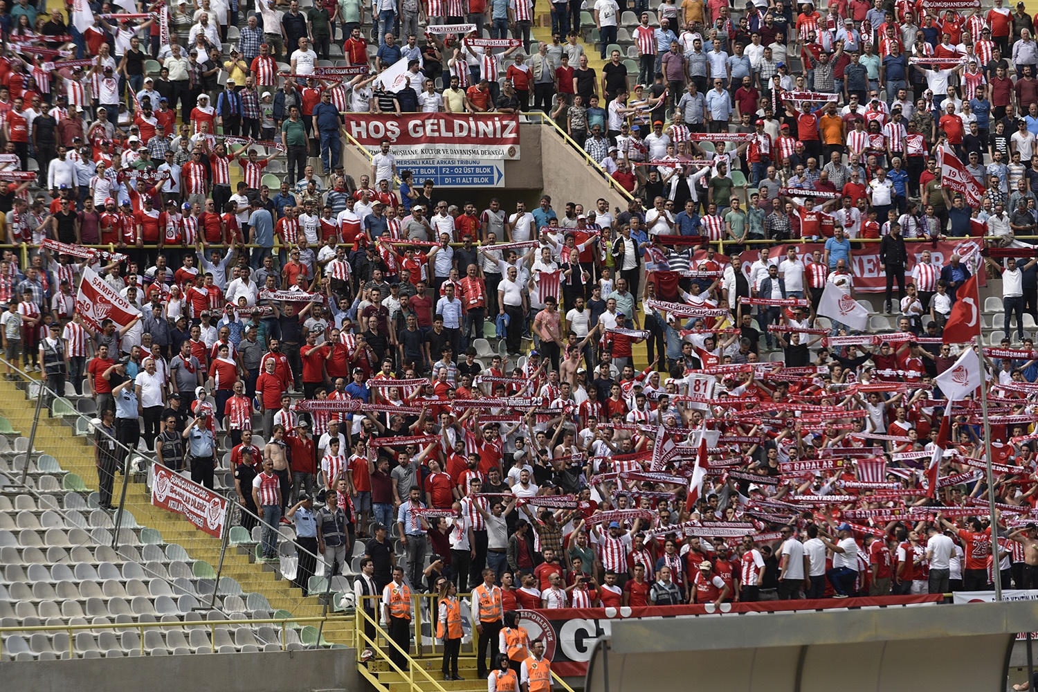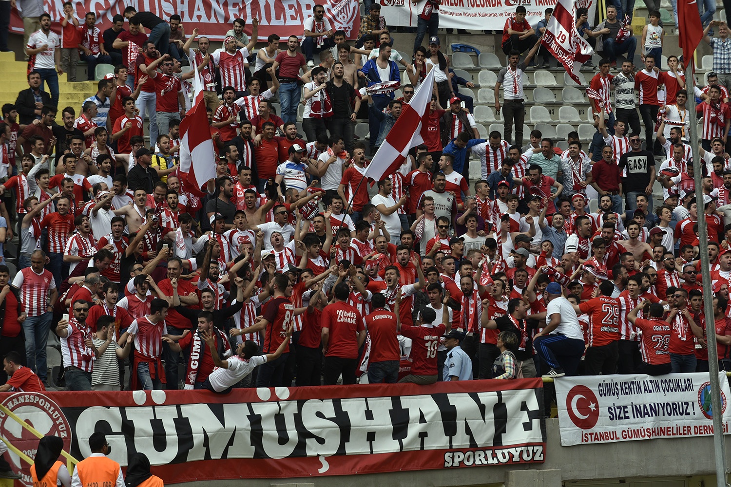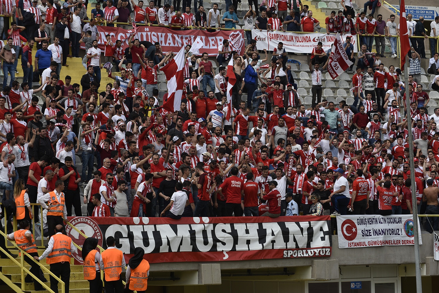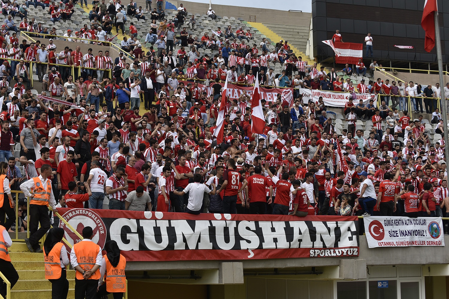 Oldukça sıcak bir havada ve yoğun taraftar baskısı altında oynanan müsabakayı Vali Okay Memiş, Belediye Başkanı Ercan Çimen, GTSO Başkanı İsmail Akçay, başta olmak üzere binlerce Gümüşhaneli izledi.