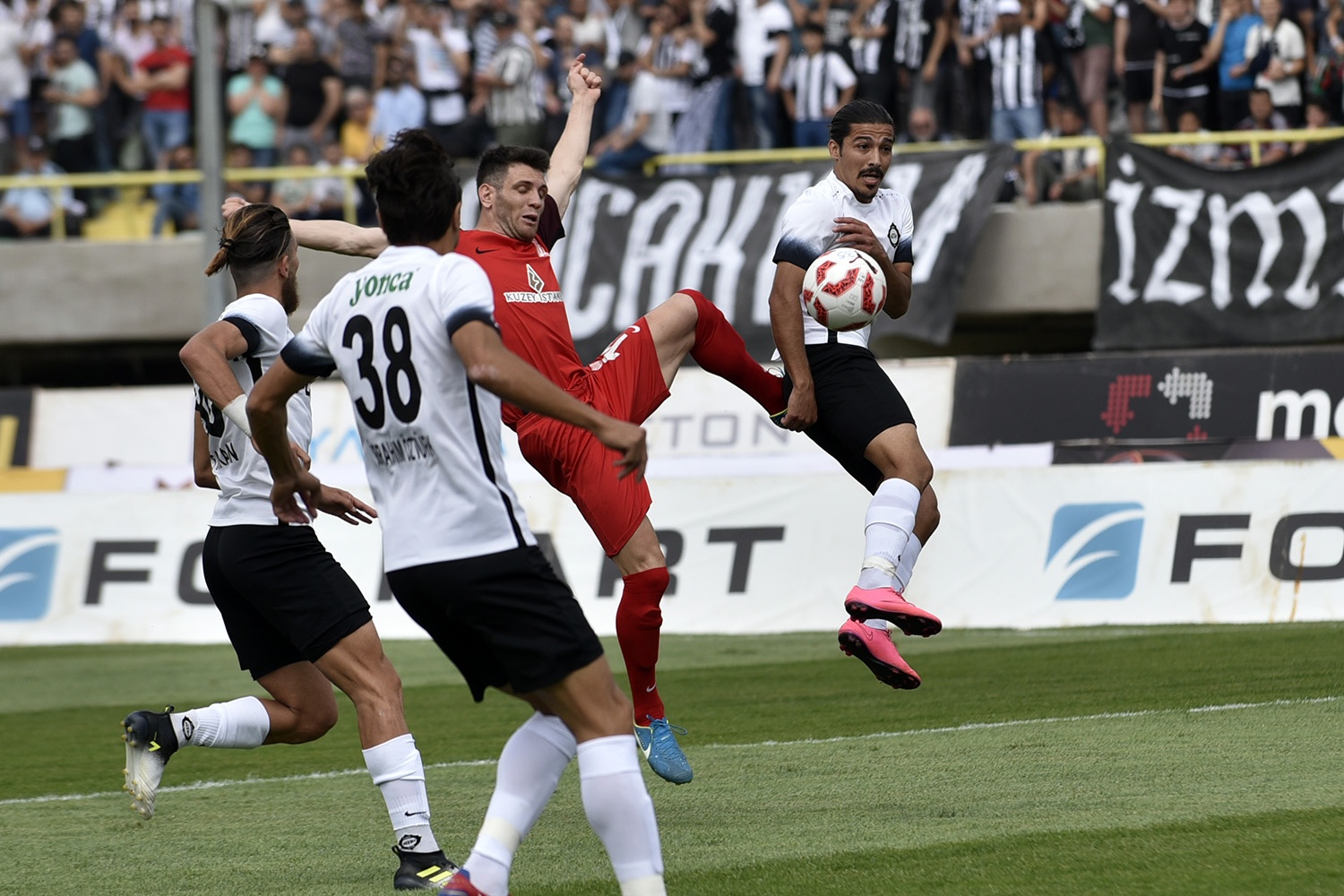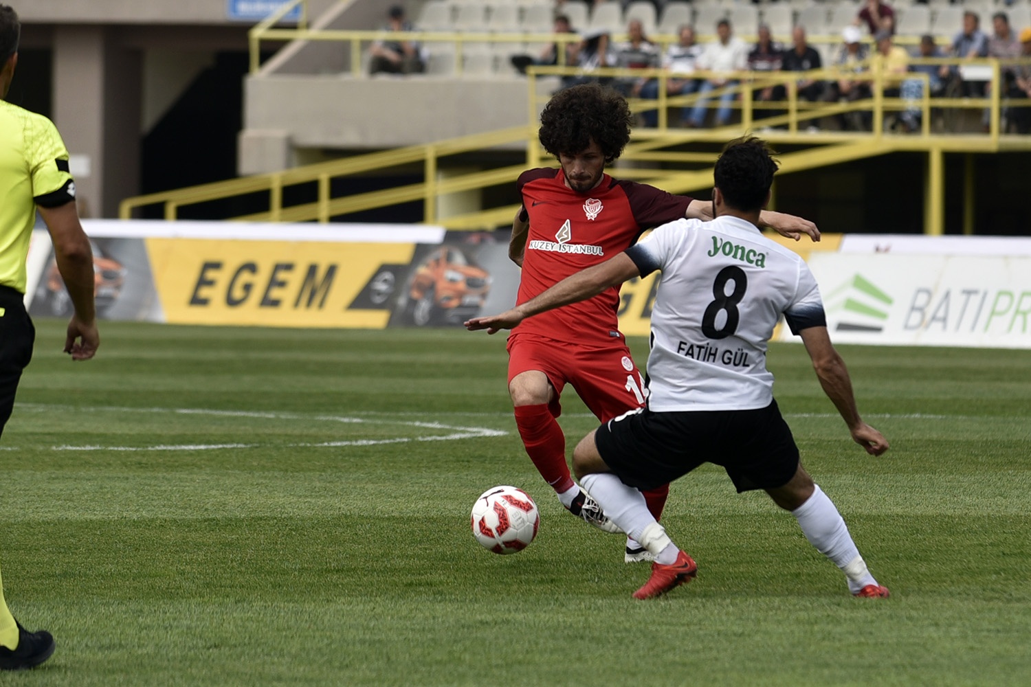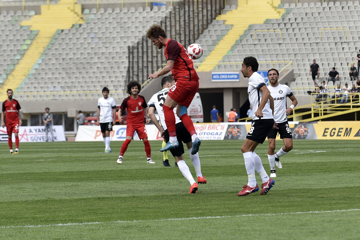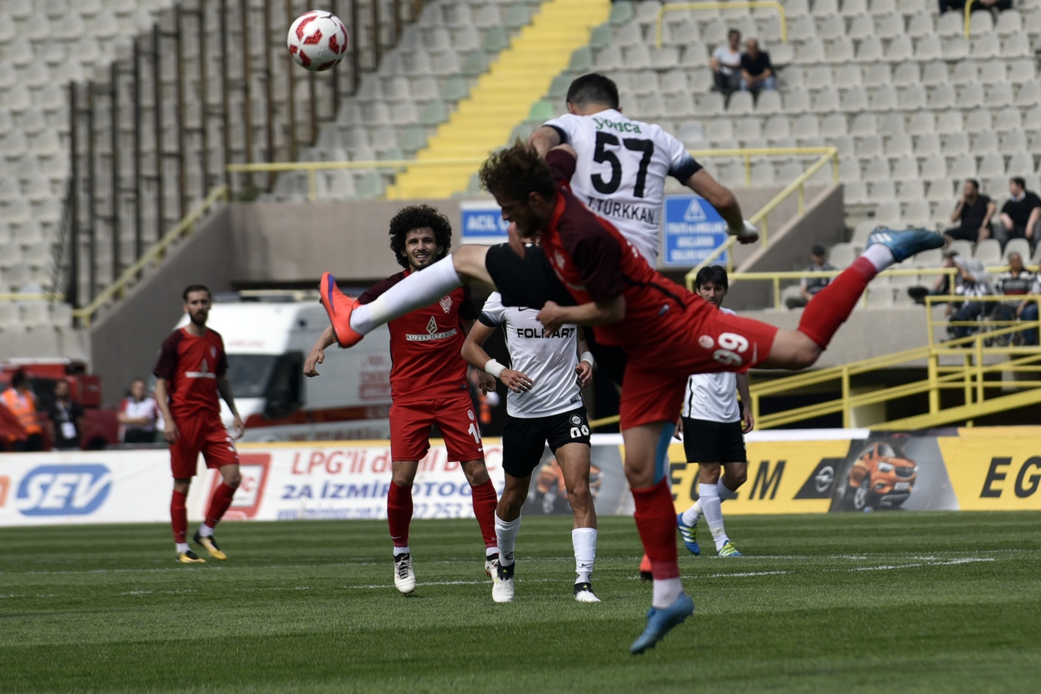 Penaltı pozisyonunda ikinci sarı kartı gören Taner Koç, kırmızı kartla oyun dışı kaldı.