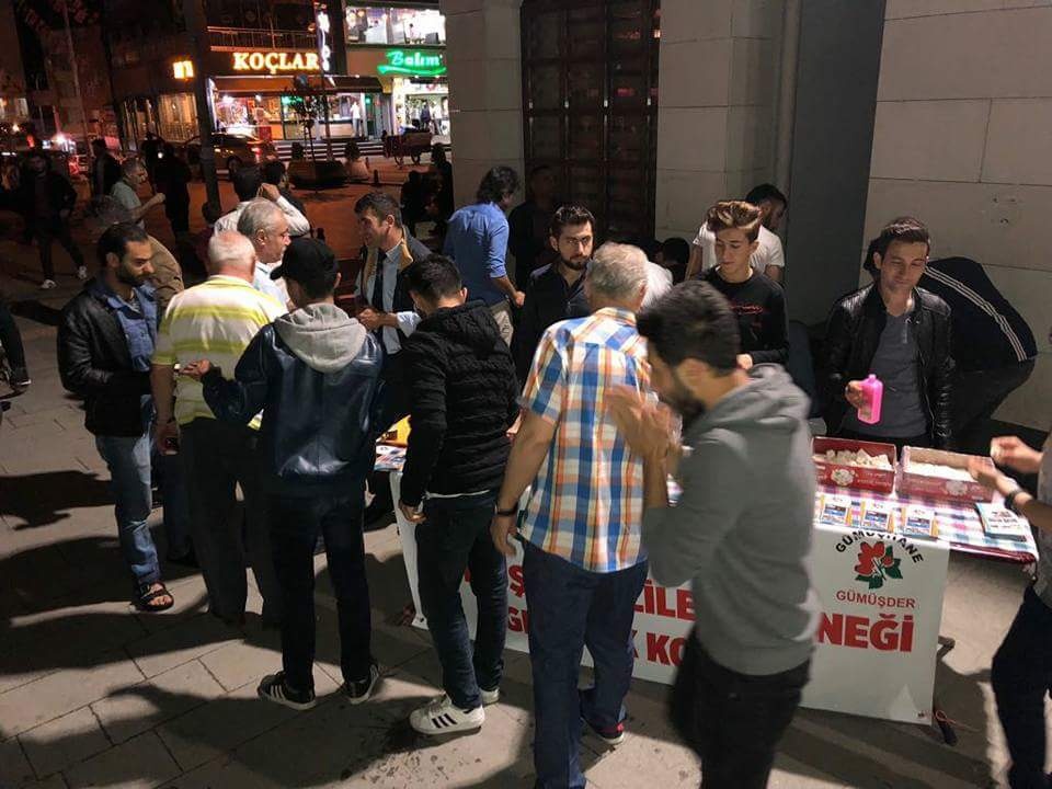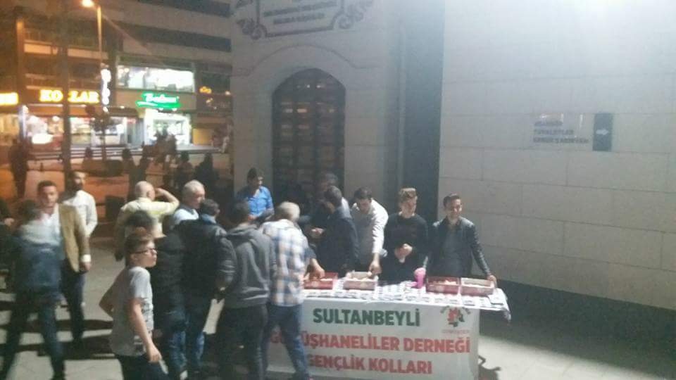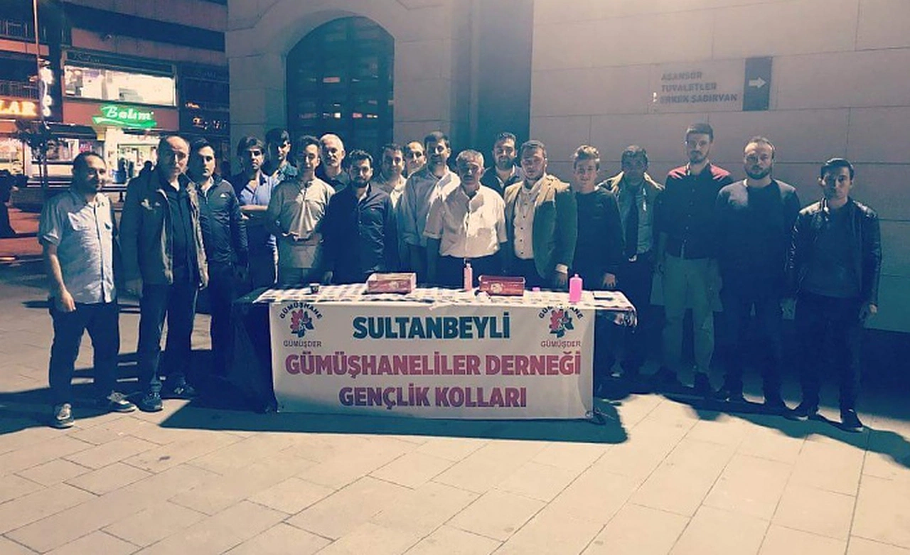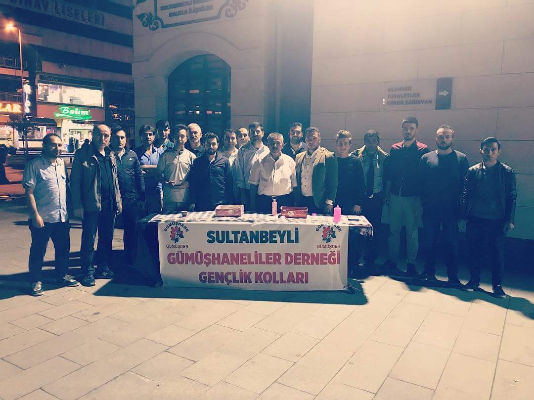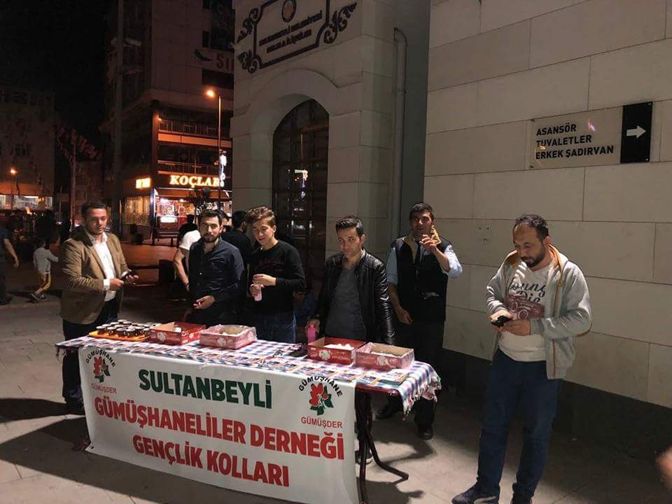 Sultanbeyli Gümüşhaneliler Derneği (GÜMÜŞ-DER) Gençlik Kolları Osmanlı döneminde Ramazan aylarında geleneksel yapılan şerbet ve lokum ikramı adetini yaşatmak ve hatırlatmak için Ramazan ayının ilk teravih sonrası Sultanbeyli merkez camii önünde vatandaşlara şerbet ve lokum dağıttı.