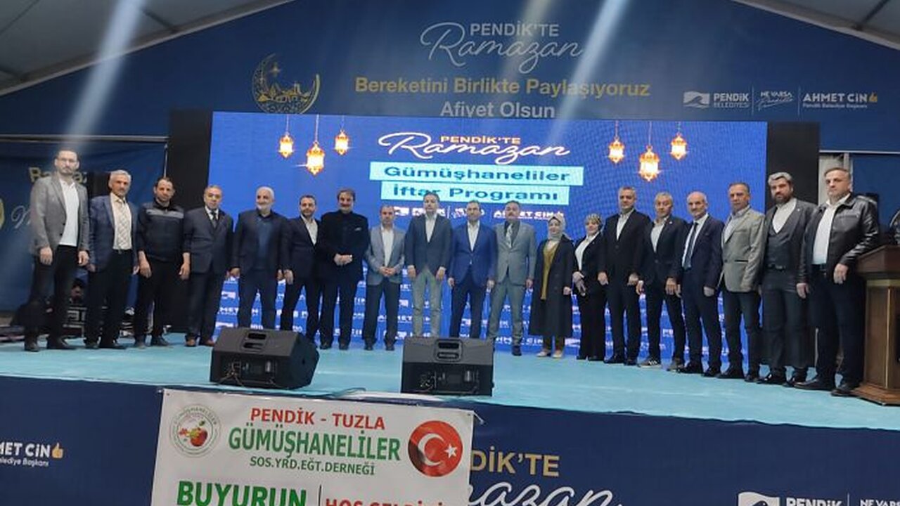 Pendik Belediyesinin öncülüğünde Pendik Tuzla Gümüşhaneliler Derneğinin ev sahipliğinde Pendik Millet Bahçesinde düzenlenen iftar buluşmasına hemşerilerimiz, Pendik Belediye Başkanı Ahmet Cin, Pendik Tuzla Gümüşhaneliler Dernek Başkanı Şaban Cebeci, AK Parti Pendik İlçe Başkanı Ali Şirin, PENDEF Başkanı Ziya ÖNCAN, ŞİDEF Başkan Yardımcısı Yaser Sarı, AK Parti Pendik Meclis Üyesi Dursun Gürel, Muzaffer Pala, MHP Pendik ilçe Başkanı Yalçın Çolak, Pendik Kaymakamlığı Sosyal Yardımlaşma Başkanı Orhan Alaş, Sinop Federasyon Başkan Yardımcısı Cemil Özgür, Kaynarca Esnaf Kooperatif Başkanı Hüsamettin Elçi, GÜDEF Başkan Danışmanı Sinan Terzi, Pendik Belediye Başkan Yardımcısı Hakan Öğütçü ve bir çok STK temsilcisi katıldı.
