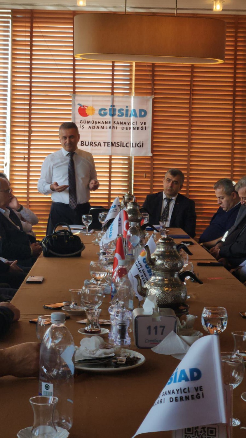 Bursa Gümüşhane Dernekler Federasyonu Başkanı Fikret Arslan, önceki dönem başkanları ve yönetim kurulu üyelerinin de katıldığı programda konuşan GÜSİAD Bursa Temsilcisi Fatih Köse, Bursa’da hemşeri iş insanları olarak büyük bir potansiyelleri olduğunu, otomotiv yan sanayiden, tekstil sektörüne, ileri teknoloji makine üretiminden gıda sektörüne birçok alanda faaliyet gösteren üyelerinin olduğunu söyledi.