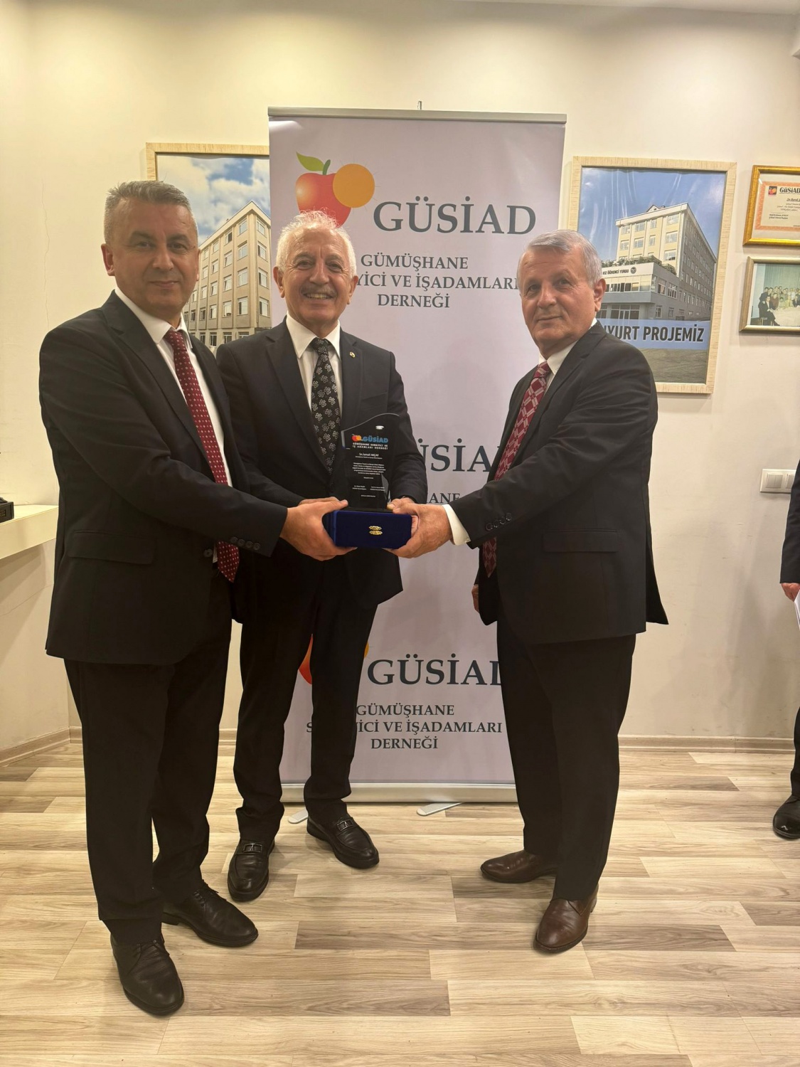 Programda karşılıklı değerlendirmelerin ardından GÜSİAD Genel Başkanı Dr.Yüksel Yalçın ve GÜSİAD Onursal Başkanı Prof.Dr. Kenan Aydın yönetim kurulu adına GTSO Başkanı İsmail Akçay’a ve GÜSİAD Gümüşhane Şube Başkanı Murat Akçay’a plaket takdim etti.