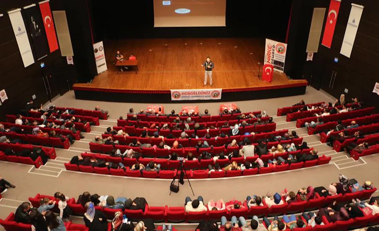 Dernek Gençlik Kollarının da kamu spotuyla katkıda bulunduğu program, Narkotik Suçlarla Şube Müdürlüğü ekibinin slayt eşliğinde görsel ve sözlü sunumuyla devam etti.