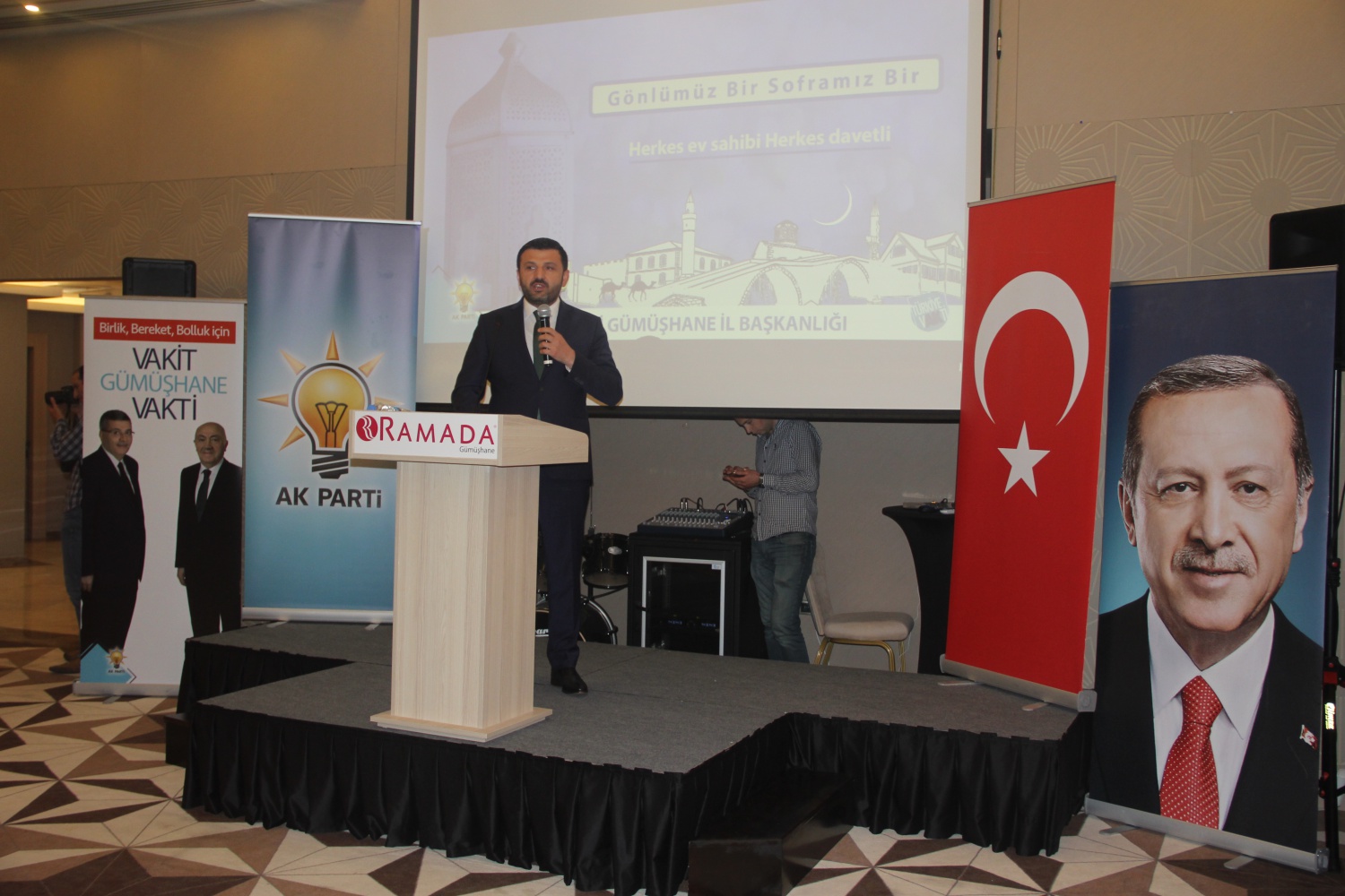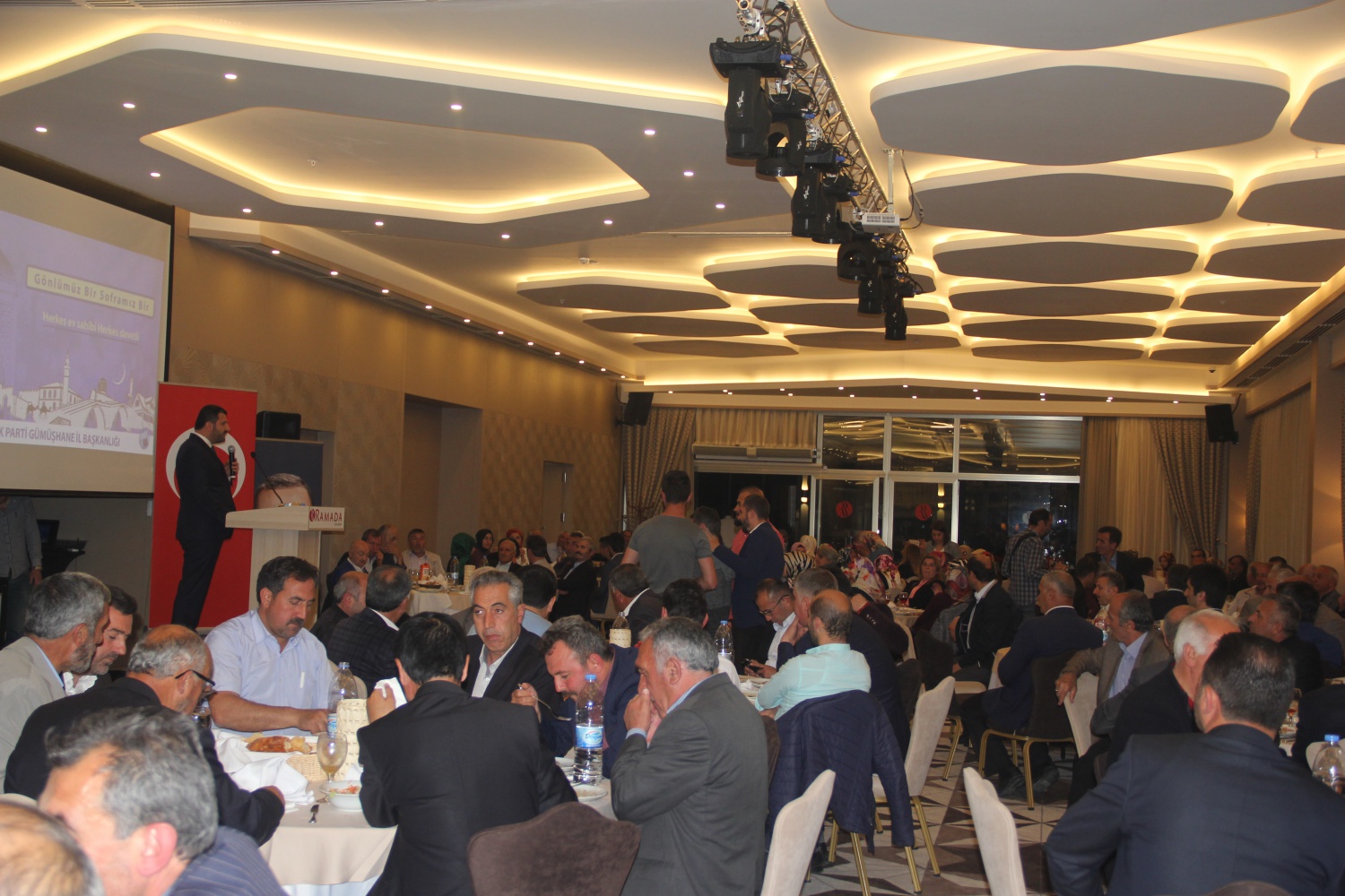 Önceki dönem yönetim kurulu üyeleri, önceki dönem il başkanları, önceki dönem milletvekilleri, mevcut yönetimler, belediye başkanları ilçe başkanları ve parti çalışanlarının davet edildiği iftar programına AK Parti Gümüşhane İl Başkanı Av. Celalettin Köse, milletvekilleri Hacı Osman Akgül ve Cihan Pektaş da katıldı. Programda yaptığı konuşmada birlik ve beraberlik vurgusu yapan il başkanı Köse, rekor hedefledikleri 24 Haziran seçimleri için bütün partililerden destek istedi.