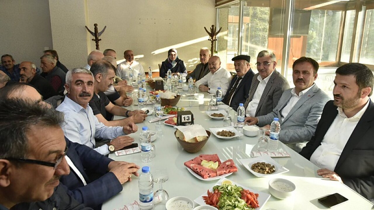 Yemeği veren işadamı Hüsamettin Çimen ise davetlerine katıldıkları için herkese teşekkür ederek, “Yemeğin amacı birlik olmak. AK Parti zamanında Recep Tayyip Erdoğan Gümüşhane’ye ne yaptı diyecekseniz önce şunu düşünün. Ben nakliyeciyim. Bir Zigana, Kop, Vauk, Pekün dağı tünelleri yeter. Eğer bu dönemde mazot 5,5 olduysa tüneller açıldığında 2,5 lira olacak demek. Şükretmemiz lazım. Ben eskiyi bilirim. 16 yıldan beri hiçbir kuşkum ve rahatsızlığım yok. Zaman zaman dalgalanmalar olur. Biz eskiden bire üç dalgalanırdık şimdiki gibi değil. Bugün istikrar var. Türkiye şuanda Suriye’de tek kanatla değil ABD, Fransa, İngiltere, Almanya ile uğraşıyor. Türkiye’yi kimse istemiyor. Tayyip Erdoğan’ı istemiyorlar. Niye? Onun zamanında Türkiye tank yaptı, helikopter yaptı. Bunlar bir ülkenin en iyi şekilde kalkınması demek. Eğer olmasaydı biz PKK ile savaşamazdık. Onun için hepimiz elimizi vicdanımıza koyalım. İlk olarak Erdoğan’ı, sonra da Milletvekillerimizi koruyalım ve oy verelim. Vatan için, millet için oy verin. Biz bu yola baş koyduk” dedi.