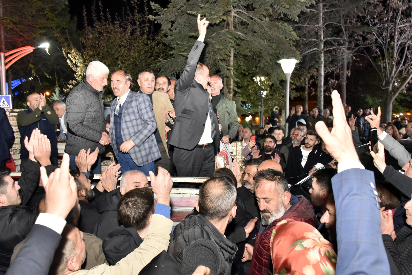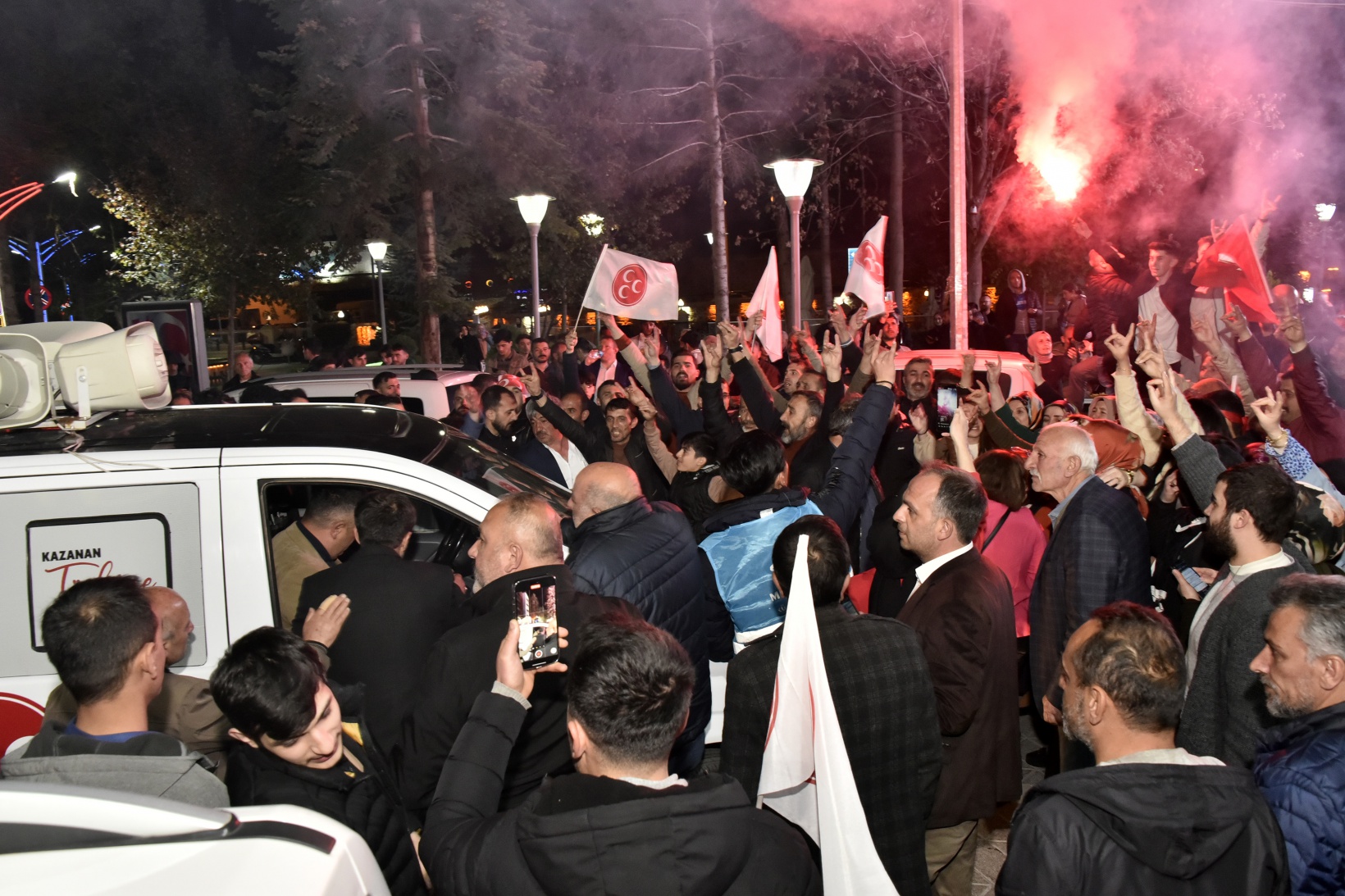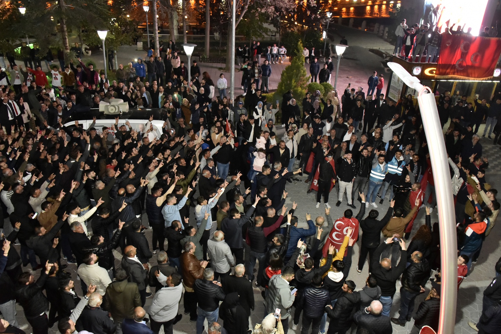 Küçük, MHP İl Başkanı Mete Kaya, Milletvekili adayı Birol Tuğlu, ilçe Belediye Başkanları, teşkilat yöneticileri ve eşiyle alanda Fatih Parkı önünde bulunan bir aracın üzerine çıkarak konuşmasını yaptı.