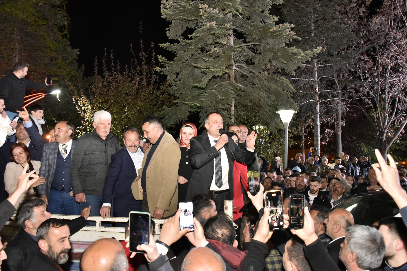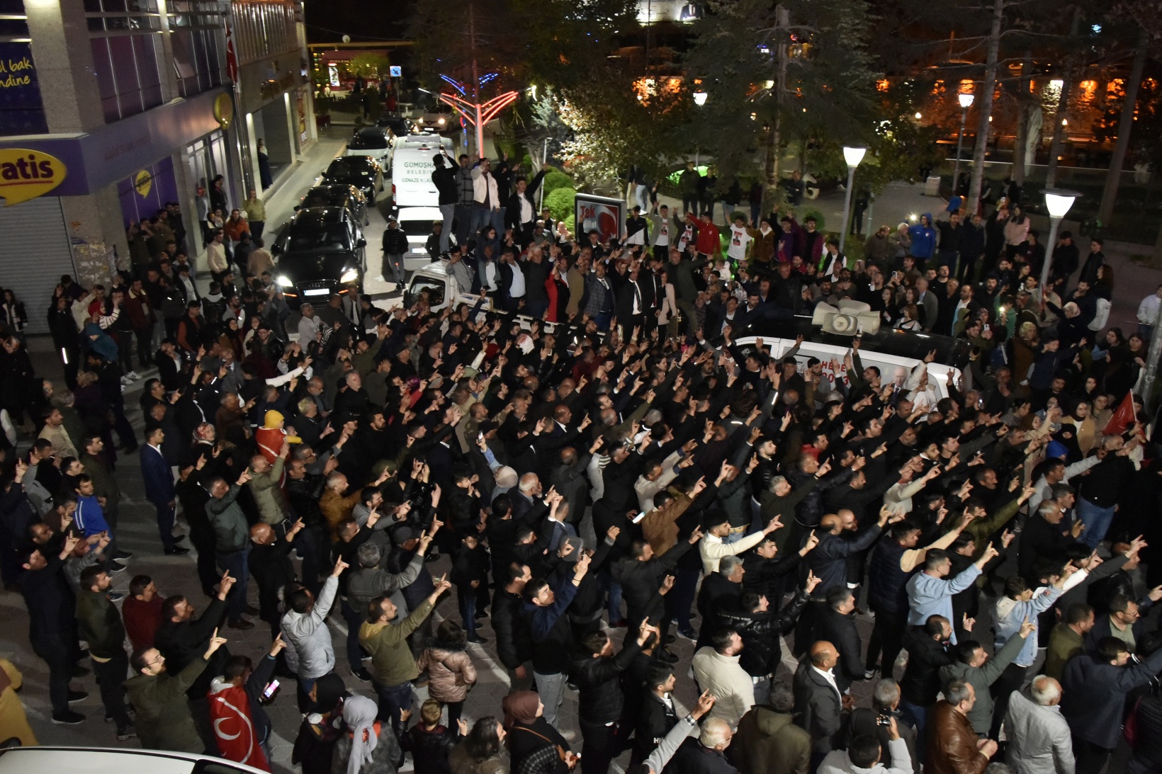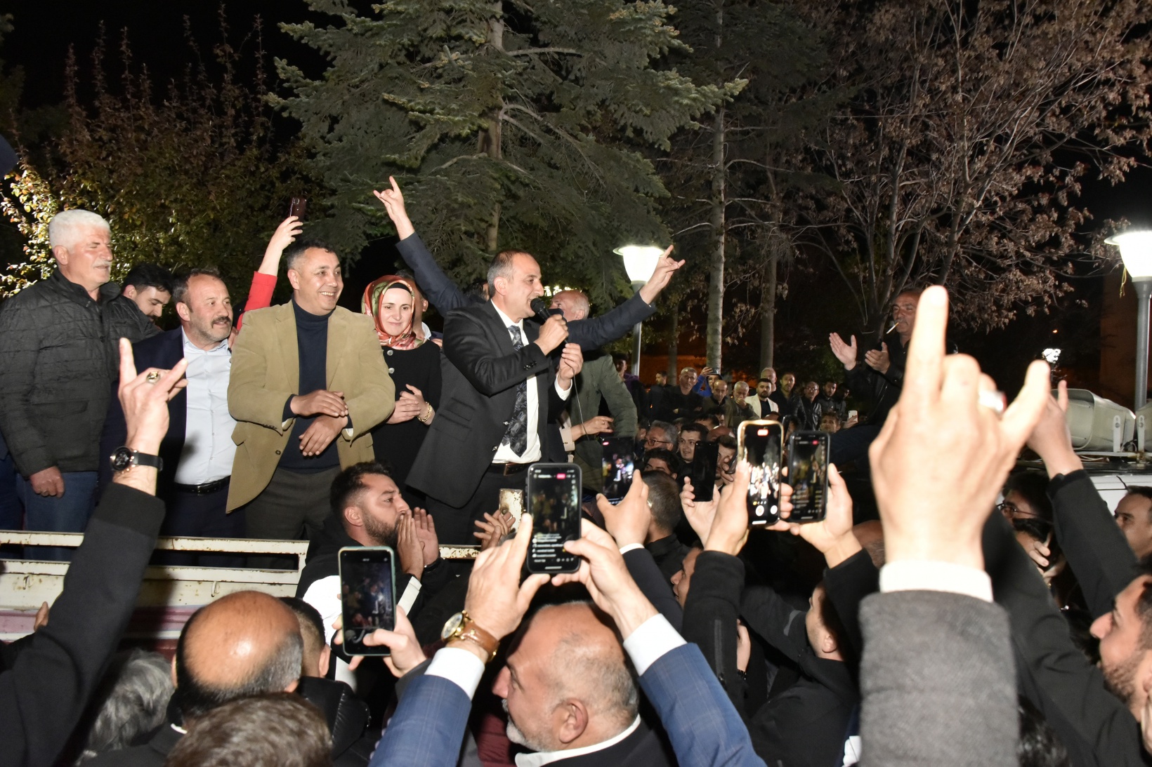 Küçük, MHP İl Başkanı Mete Kaya, Milletvekili adayı Birol Tuğlu, ilçe Belediye Başkanları, teşkilat yöneticileri ve eşiyle alanda Fatih Parkı önünde bulunan bir aracın üzerine çıkarak konuşmasını yaptı.