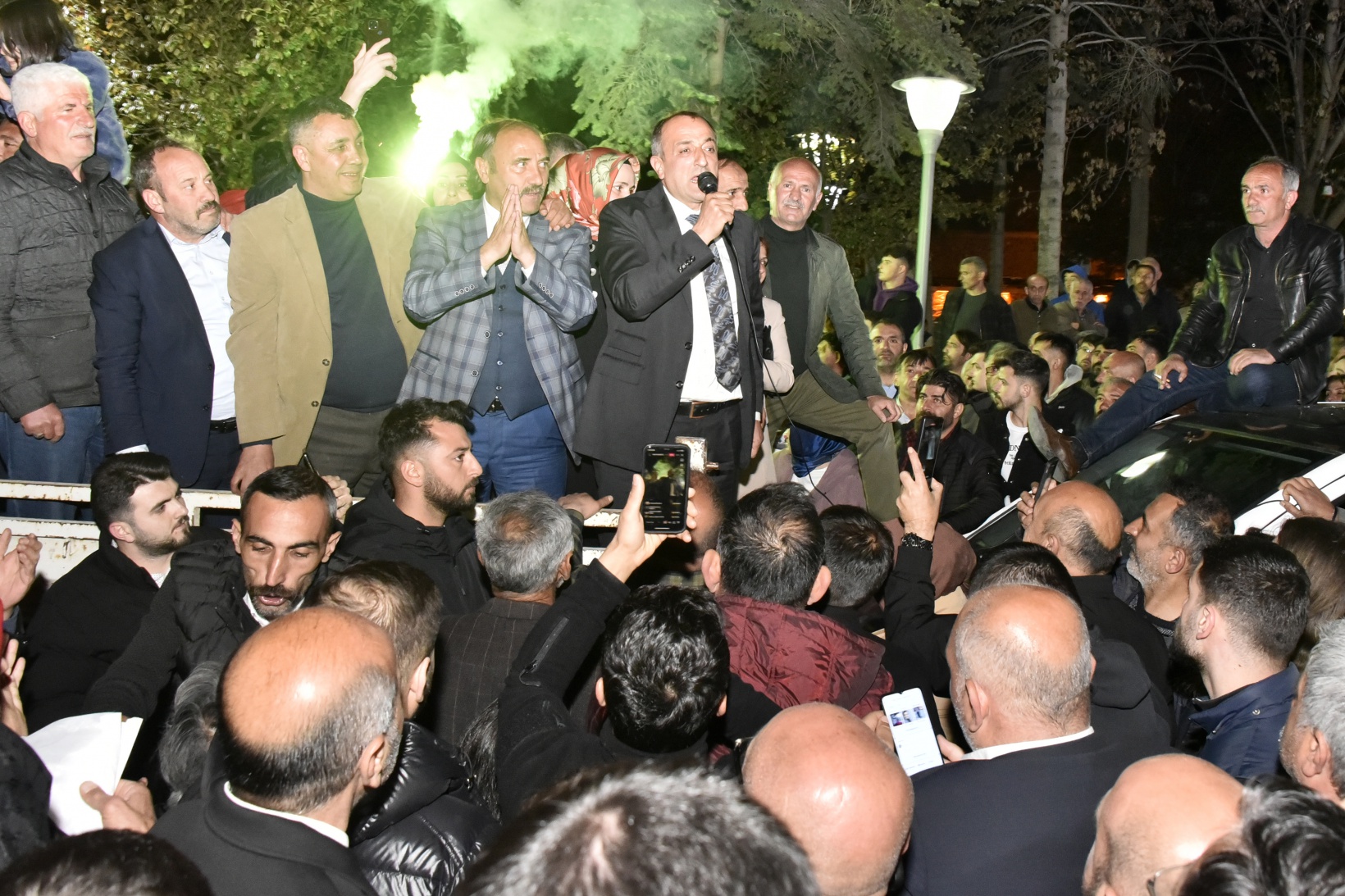 Fatih Parkı önünde kendisini bekleyen kalabalığa seslenen Küçük, Cumhurbaşkanlığı seçimleri belli olmadığı için kutlama yapılmasını istemeyerek vatandaşları itidalli davranmaya çağırdı.