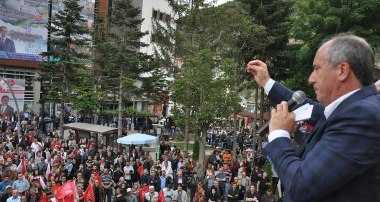 Gümüşhane ve Bayburt milletvekili adaylarıyla birlikte seçim otobüsünün üzerine çıkarak Gümüşhanelilere seslenen İnce, iktidarı ve Cumhurbaşkanı Recep Tayyip Erdoğan’ı hedef alan açıklamalar yaptı.
