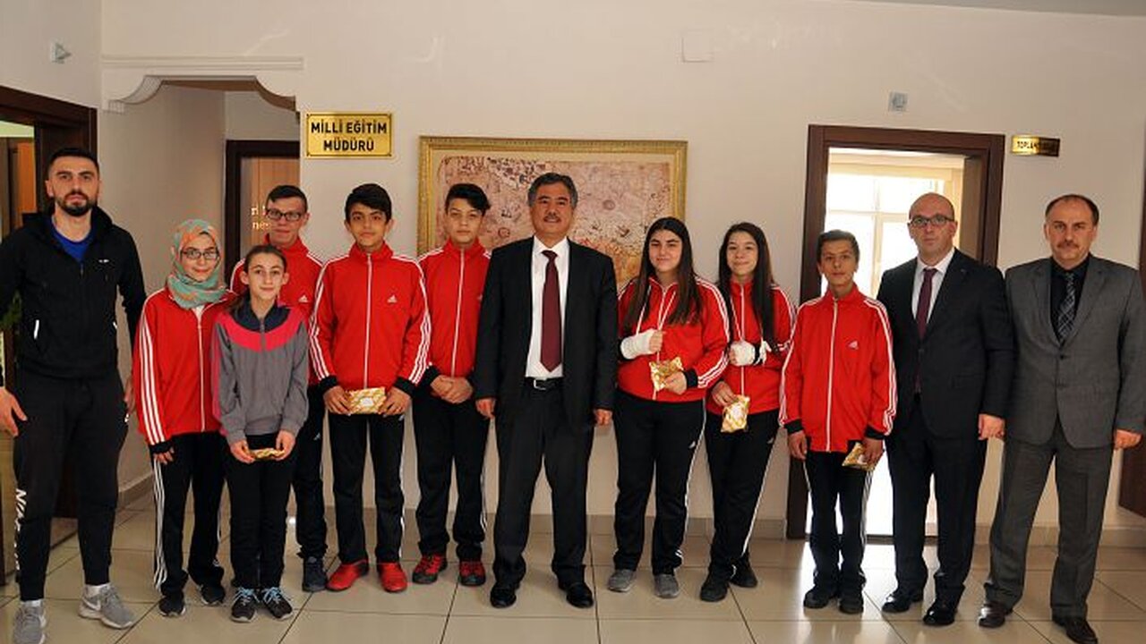 Sporcularımızın toplamda 11 madalya aldığı şampiyonanın ardından Gazipaşa Ortaokulu Müdürü Ahmet Hamdi Ayas, Bilek Güreşi Antrenörü Davut Altuntaş, Gazipaşa Ortaokulu Beden Eğitimi Öğretmeni Serdar Taşkın ve sporcuları Milli Eğitim Müdürü Seydi Doğan ve Gençlik ve Spor İl Müdürü Mücahit Atalay’ı ziyaret etti. Ziyaretlerde her iki kurum müdürü de antrenör ve sporcuları tebrik ederek ödüllendirdi.