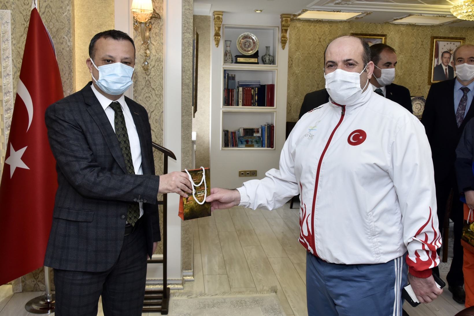 Valilik makamında Gençlik ve Spor İl Müdürü Mücahit Atalay, Spor Şube Müdürü Selahattin Taş, antrenörler ve sporcuları kabul eden Vali Taşbilek, Gümüşhane’nin spor altyapısı güçlü bir şehir olduğunu söyledi.