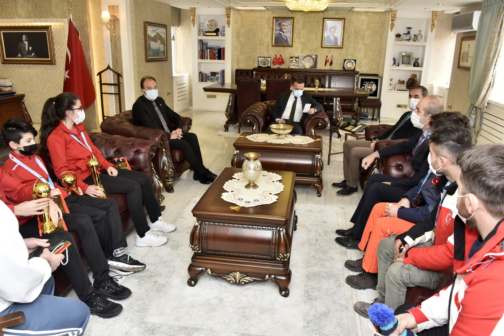 Gümüşhane Valisi Kamuran Taşbilek, geçtiğimiz günlerde yapılan kayak ve atıcılık müsabakalarından madalya ve kupalarla dönen sporcuları kabul ederek ödüllendirdi.