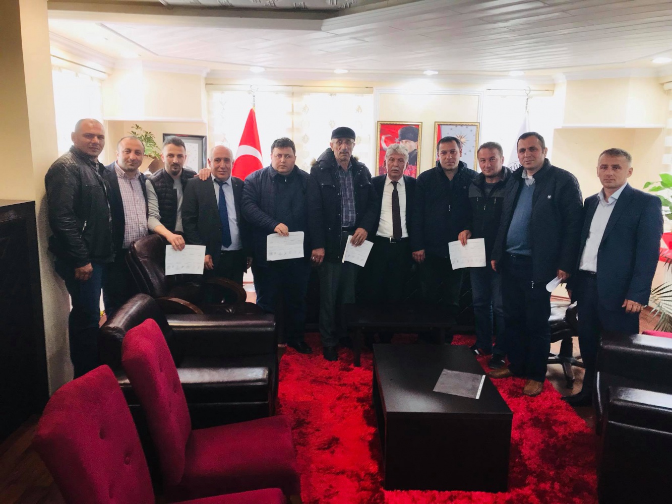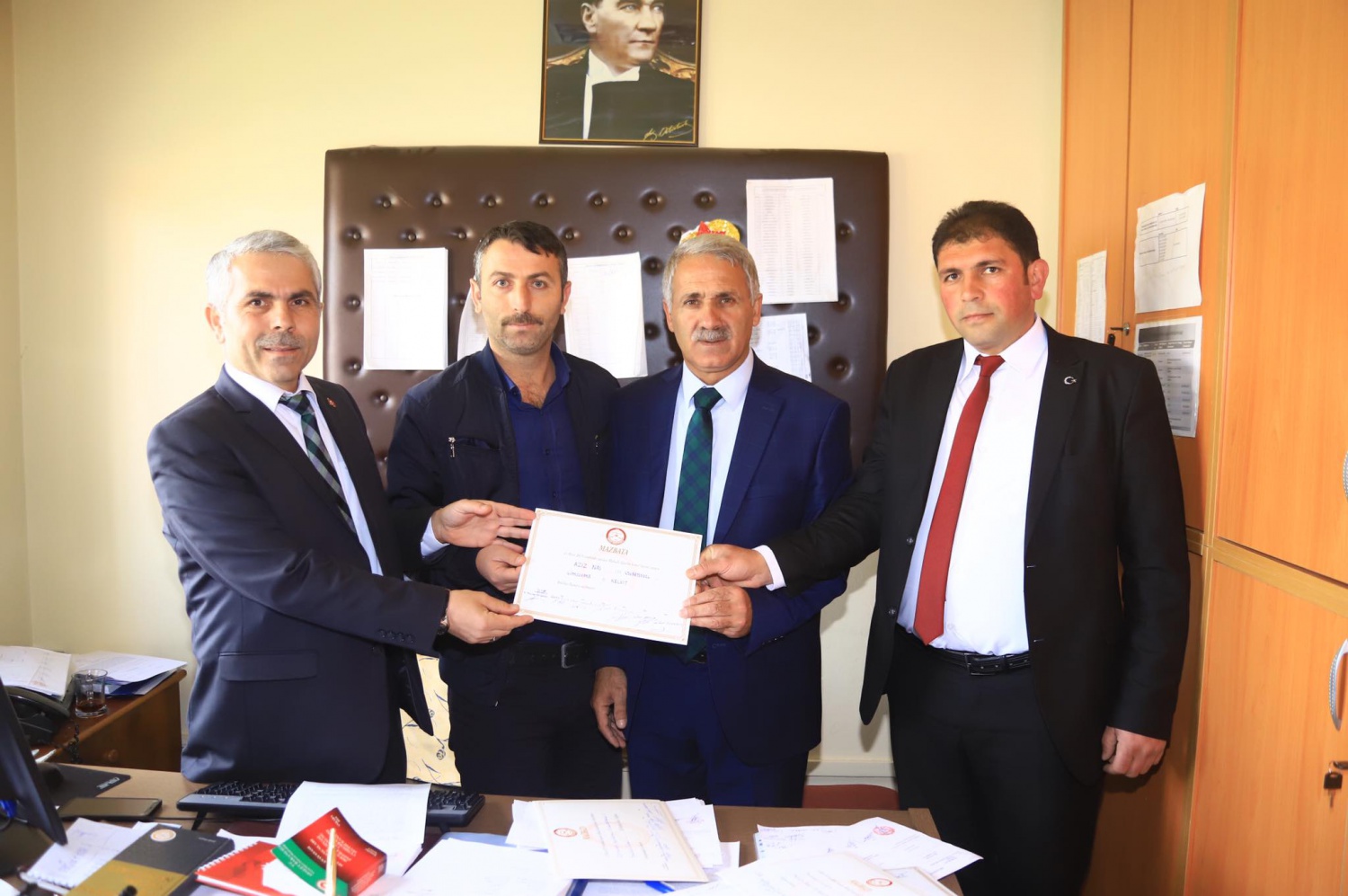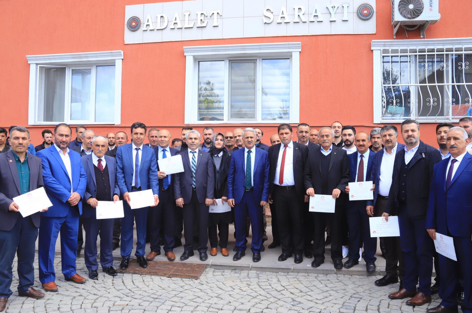 Kelkit Belediye Başkanı Aziz Nas, AK Parti İlçe Başkanı Sadi Tüysüz ve yeni seçilen İl Genel Meclisi üyeleri, Belediye Meclis üyeleri ve partililerle geldiği adliyede, İlçe Seçim Müdüründen mazbatasını aldı.