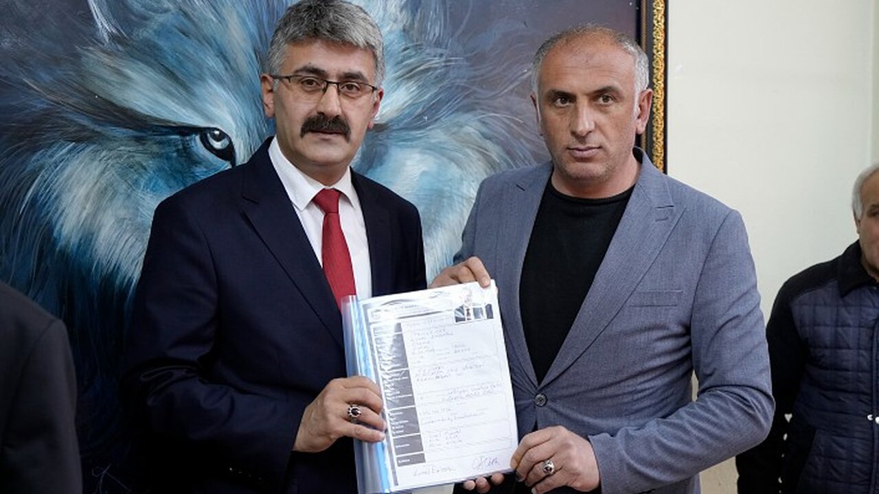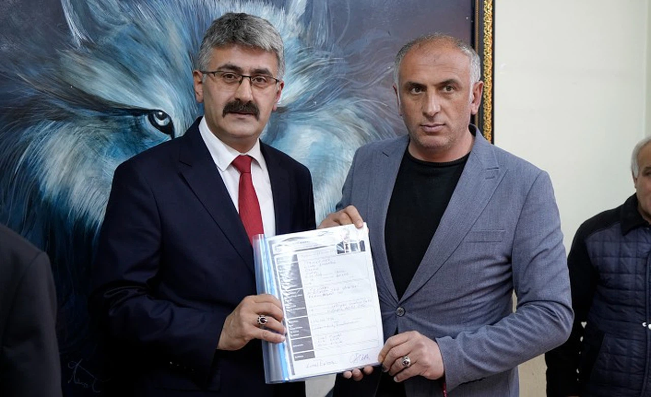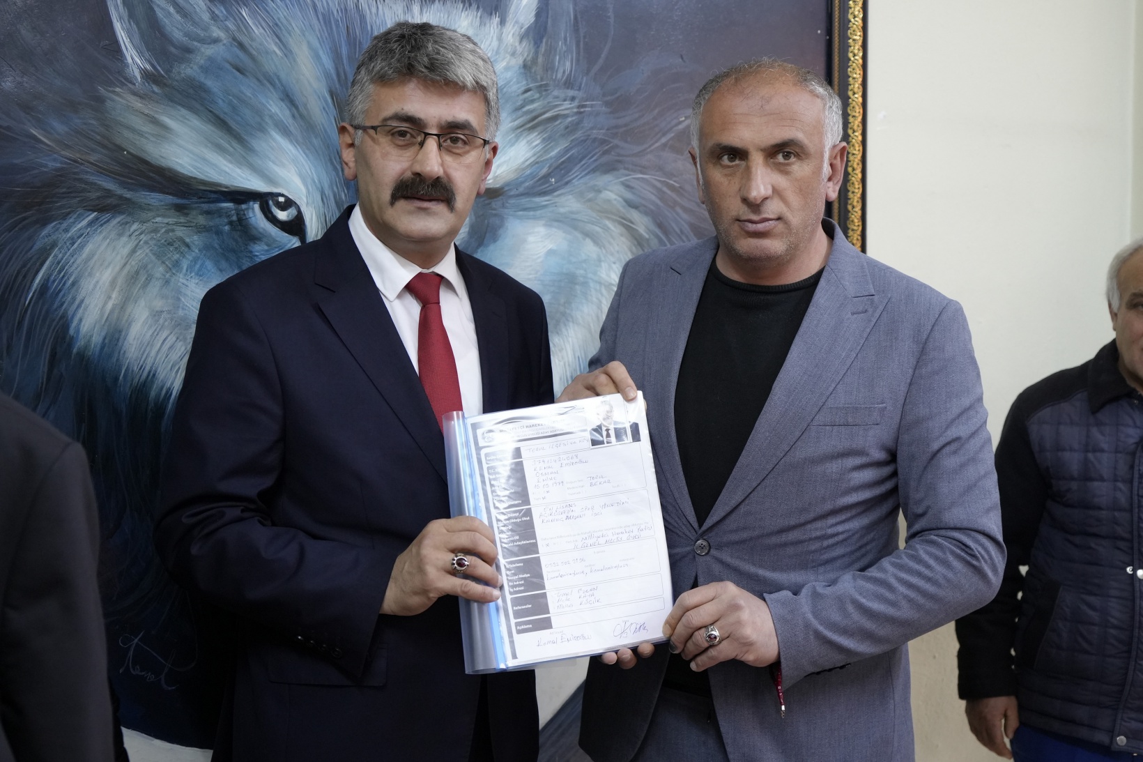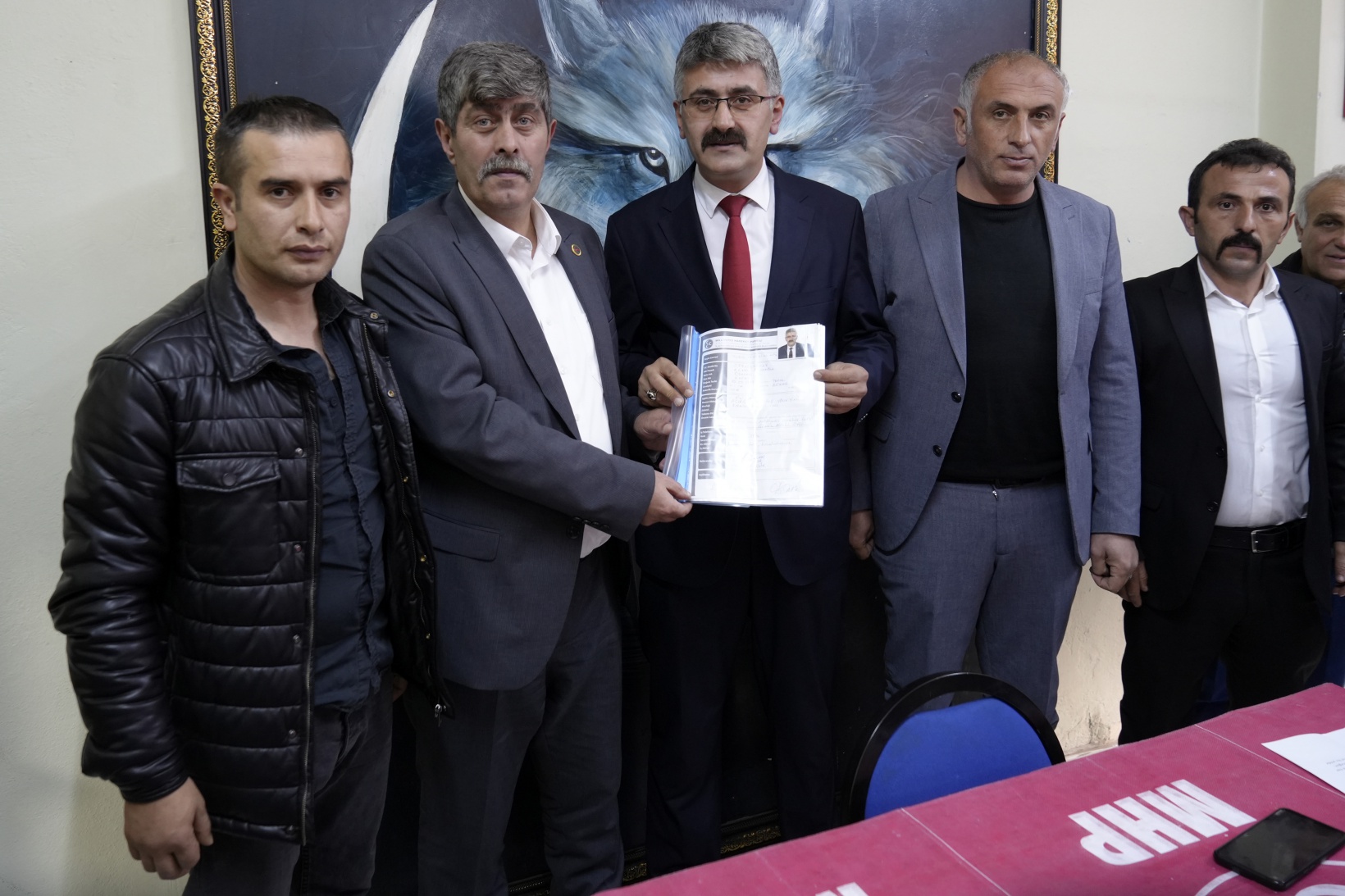 Beraberindeki kalabalık heyetle Milliyetçi Hareket Partisi (MHP) Torul İlçe Başkanlığına giden Emiroğlu, yeni dönem için hazırladığı evrakları İlçe Başkanı Temel Özcan’a teslim etti.
