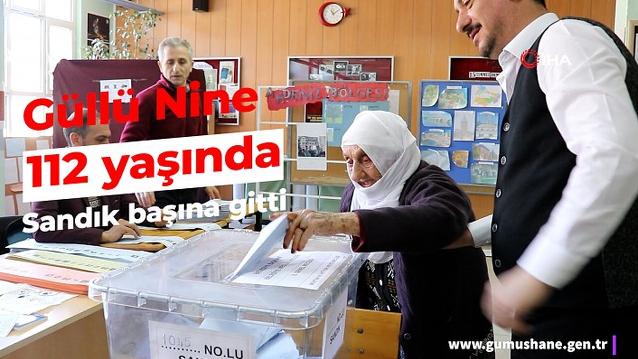 112 yaşında olduğunu duyan görevli ve vatandaşlar şaşkınlıklarını gizleyemezken, oyunu verdikten sonra zarfı sandığa da kendisi atan Güllü Doğan, seçimlerin hayırlı olmasını diledi.