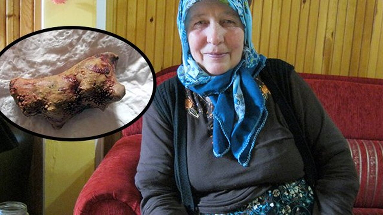 Gümüşhane’nin Kürtün ilçesinde yaşayan 65 yaşındaki Nadiye Düzgün’ün böbreğinden çıkan 7 santimetre boyunda, 5 santimetre çapındaki böbrek taşı görenleri hayrete düşürüyor.