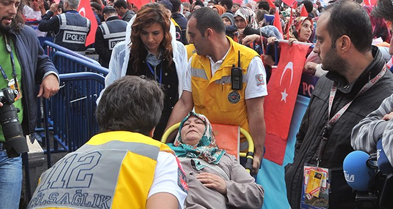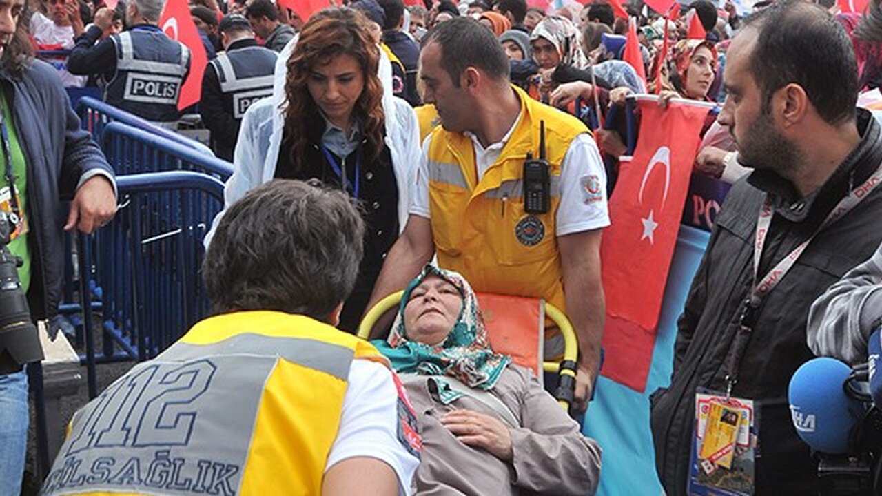 Gümüşhane İl Sağlık Müdürü Dr. Emre Boşnak, Cumhurbaşkanı Recep Tayyip Erdoğan’ın halka seslendiği sırada rahatsızlanan 12 kişiye alanda hazır bulunan 112 Acil Servis ekipleri tarafından müdahale edildiğini söyledi.