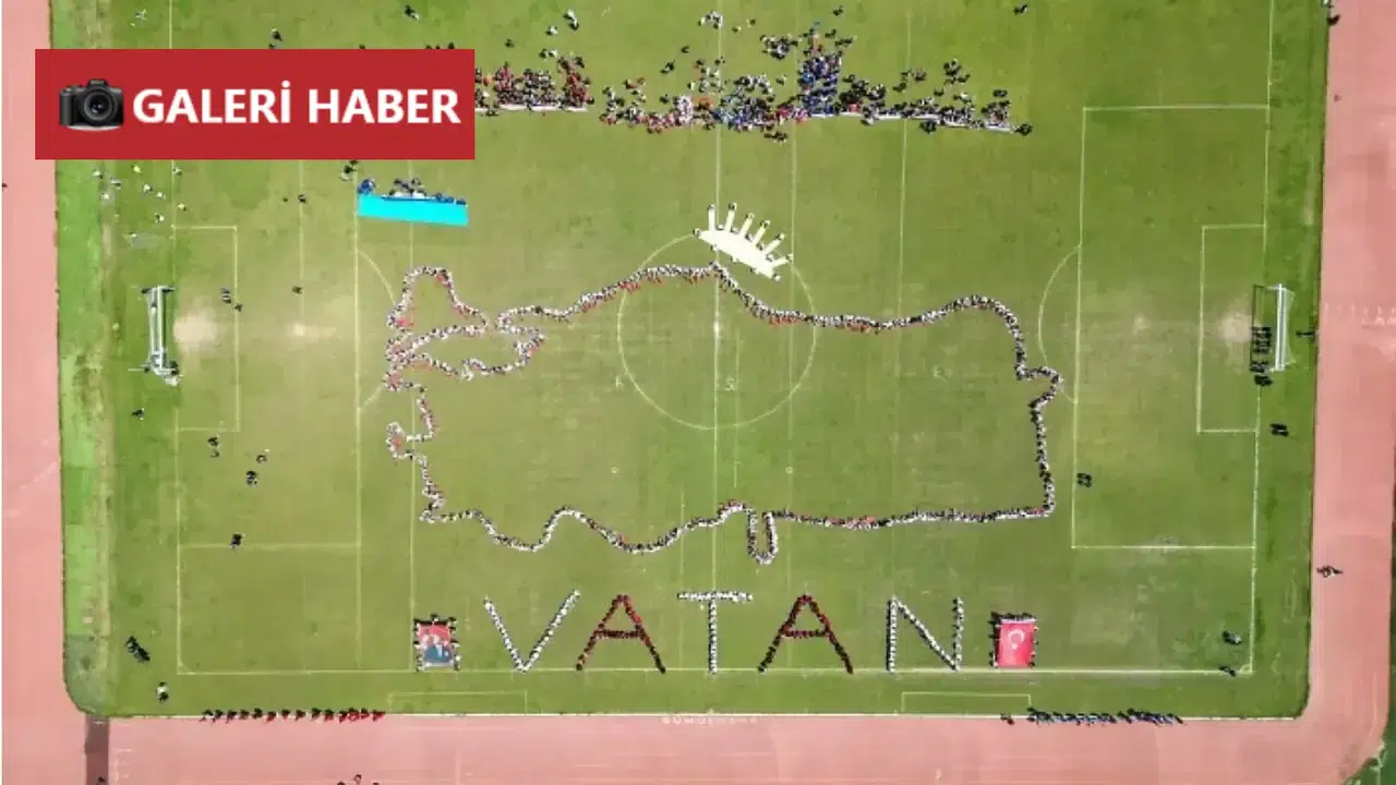 Yenişehir Stadyumu’ndaki kutlamalara Gümüşhane Valisi Aydın Baruş, il protokolü, öğrenciler ve vatandaşlar katıldı.