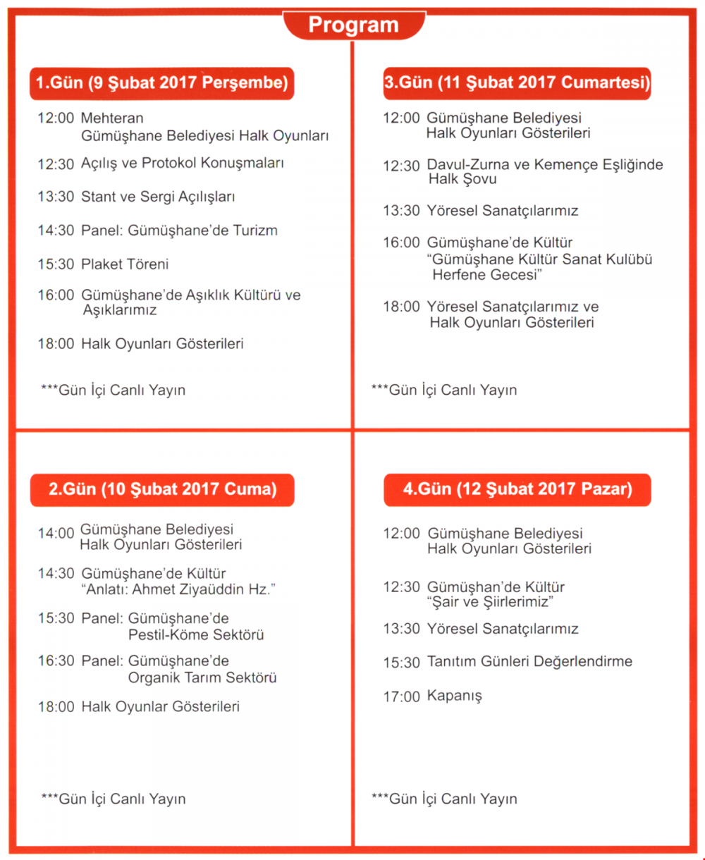 Gümüşhane Valiliği’nin destek ve himayelerinde Ankara Gümüşhane Dernekler Federasyonu (GÜDEF) tarafından bu yıl 5.si düzenlenecek olan ‘Gümüşhane Tanıtım Günleri’ 9-12 Şubat tarihinde yapılacak.