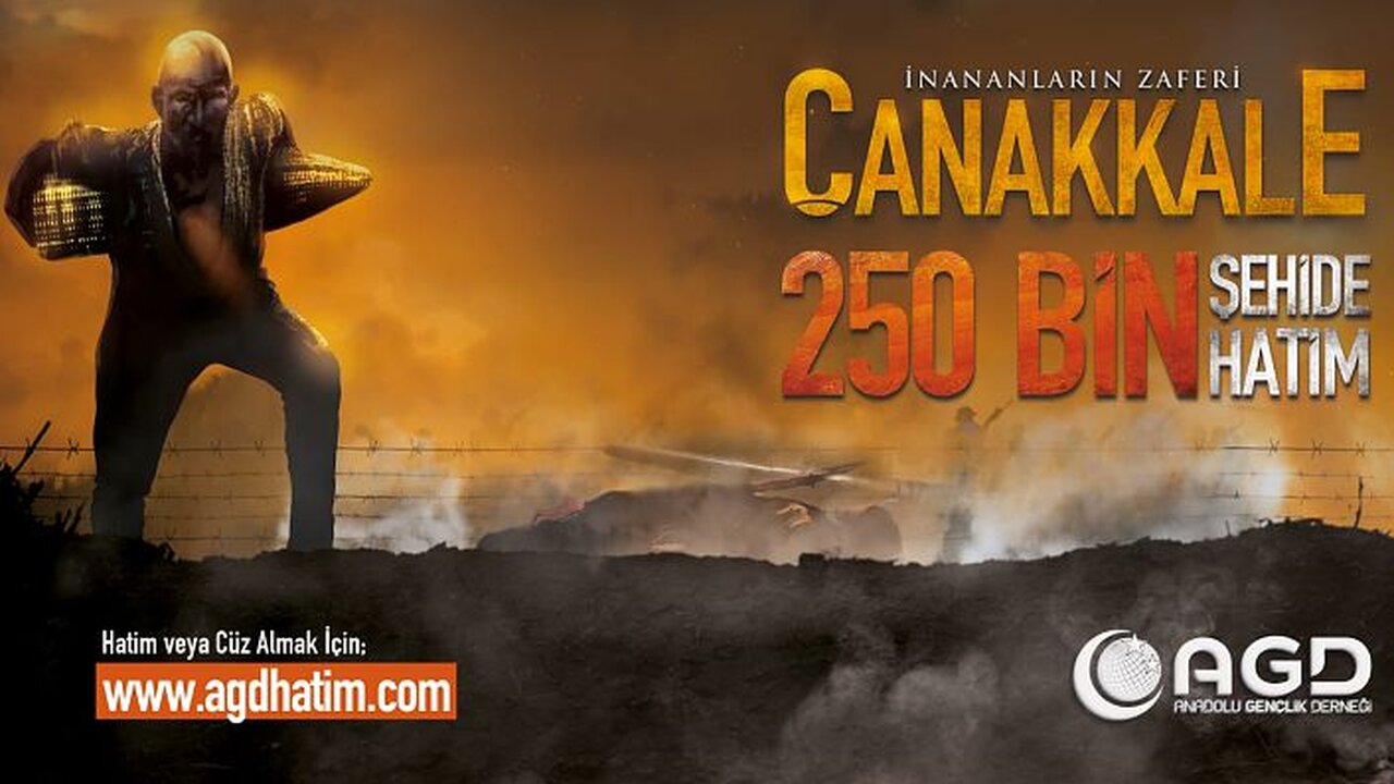 Anadolu Gençlik Derneği (AGD) ve Milli Gençlik Vakfı (MGV) Çanakkale Zaferi’nin 106. yıl dönümünde aziz şehitlerimizi “250 bin Şehide 250 bin Hatim" kampanyası vesilesiyle hatimlerle ve dualarla yad ediyor.