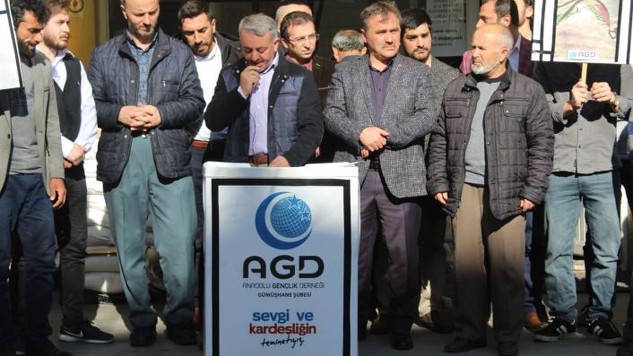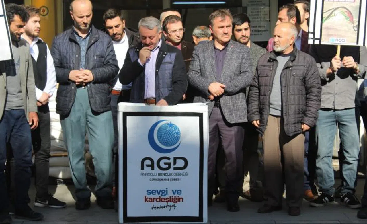 Anadolu Gençlik Derneği (AGD) Gümüşhane şubesi, Cuma namazı sonrası basın açıklaması yaparak İsrail’in 100 yılı aşkın bir süredir Filistin topraklarını kan gölüne çevirdiğini söyledi.