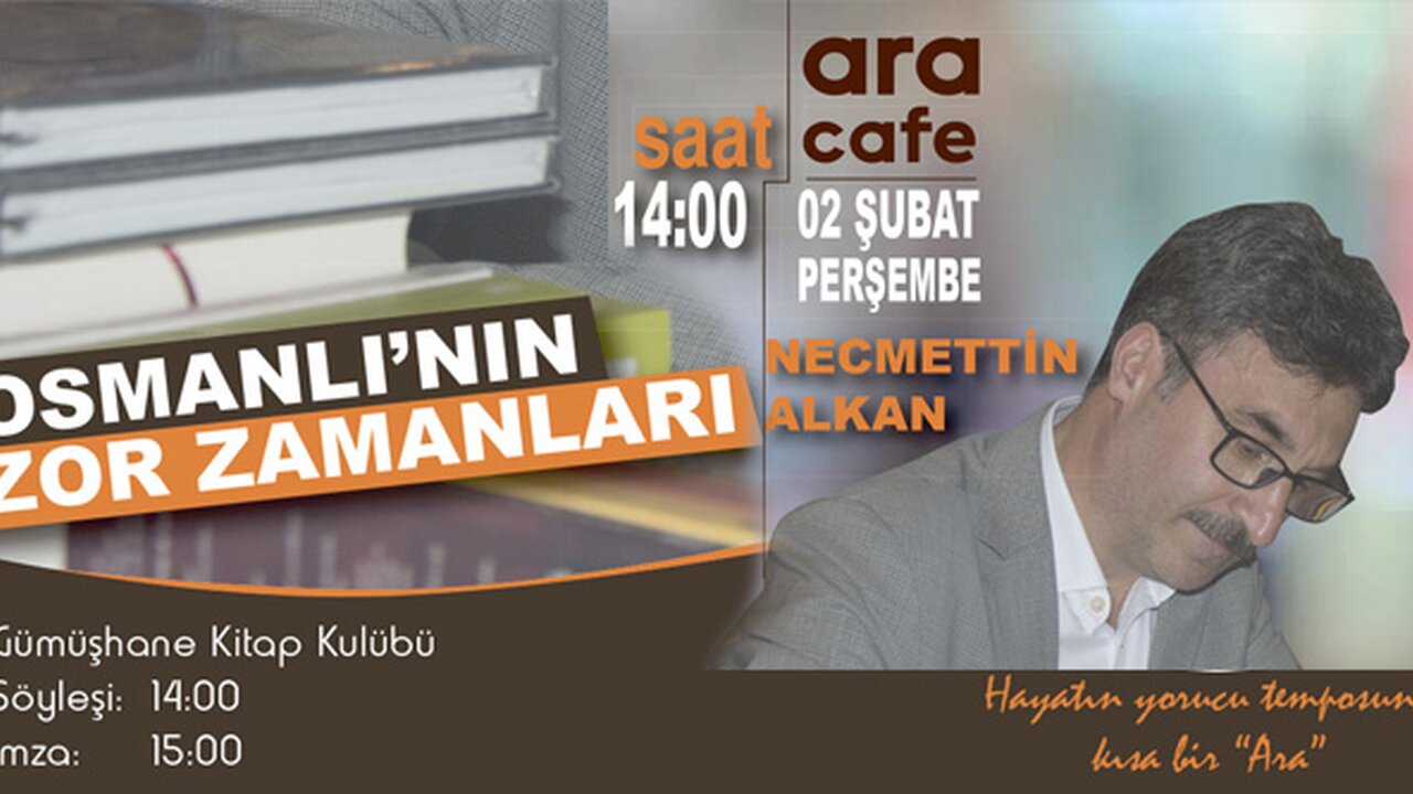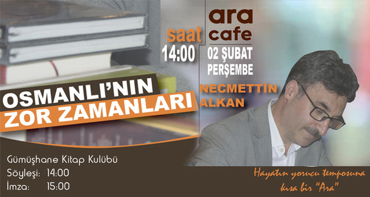 Çalışmalarını özellikle Abdülhamid Han ve Jön Türkler üzerine yapan Prof. Dr.Necmettin Alkan ile Osmanlı'nın zor günleri üzerine birde söyleşinin gerçekleştirileceği program 2 Şubat Perşembe günü saat 14.00'da Ara Cafe'de düzenlenecek.