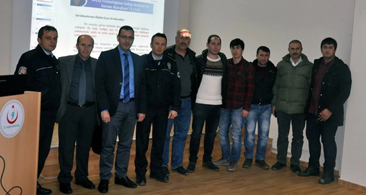 Acil Tıp Teknisyeni (ATT) ve Paramedik olarak görev yapan sağlık personeline ambulans kullanma yetkisinin verilmesinin ardından sürücü eğitim çalışmaları kapsamında düzenlenen eğitim programı İl Emniyet Müdürlüğü Trafik Tescil ve Denetleme Şube Müdürlüğünde görevli Komiser Yardımcısı Kamil Usta tarafından gerçekleştirildi.