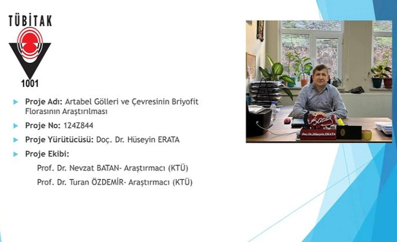Gümüşhane Üniversitesi akademisyenlerinden Doç. Dr. Hüseyin Erata’nın “Artabel Gölleri ve Çevresinin Briyofit Florasının Araştırılması” başlıklı projesi TÜBİTAK tarafından desteklenecek.