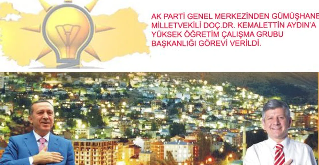 AK Parti Gümüşhane Milletvekili Doç.Dr. Kemalettin Aydın’a, Parti Genel Merkez Siyasi ve Hukuk İşleri Başkanlığınca “Yükseköğretim Kurumu Çalışma Grubu Başkanlığı” görevi verildi.