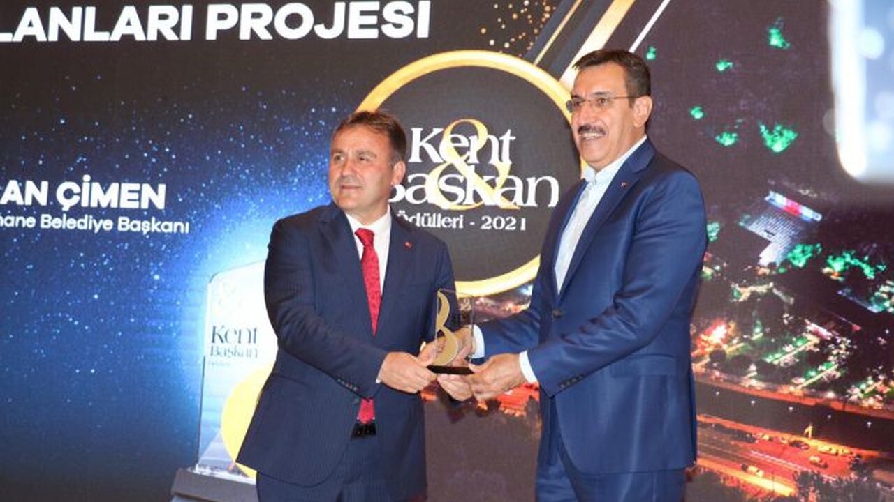 Malatya’da düzenlenen ödül törenine katılan Başkan Çimen, ödülü Eski Gümrük ve Ticaret Bakanı Bülent Tüfenkçi’den aldı.