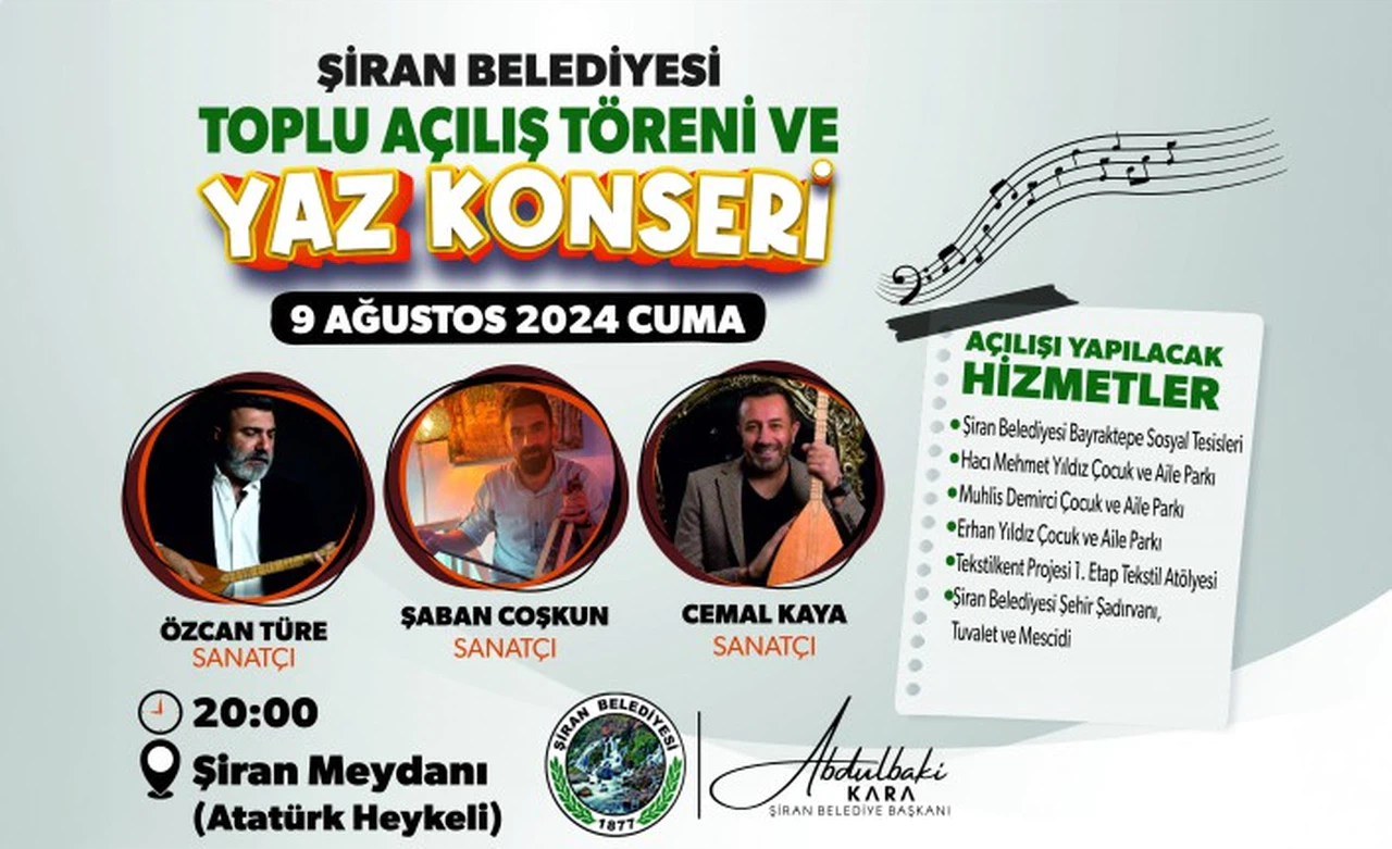 Açılışı yapılacak hizmetlerin şimdiden büyük beğeni topladığının altını çizen Şiran Belediye Başkanı Abdulbaki Kara bölgede yaşayan herkesi programa davet ederek büyük coşkuya ortak olmalarını istedi.