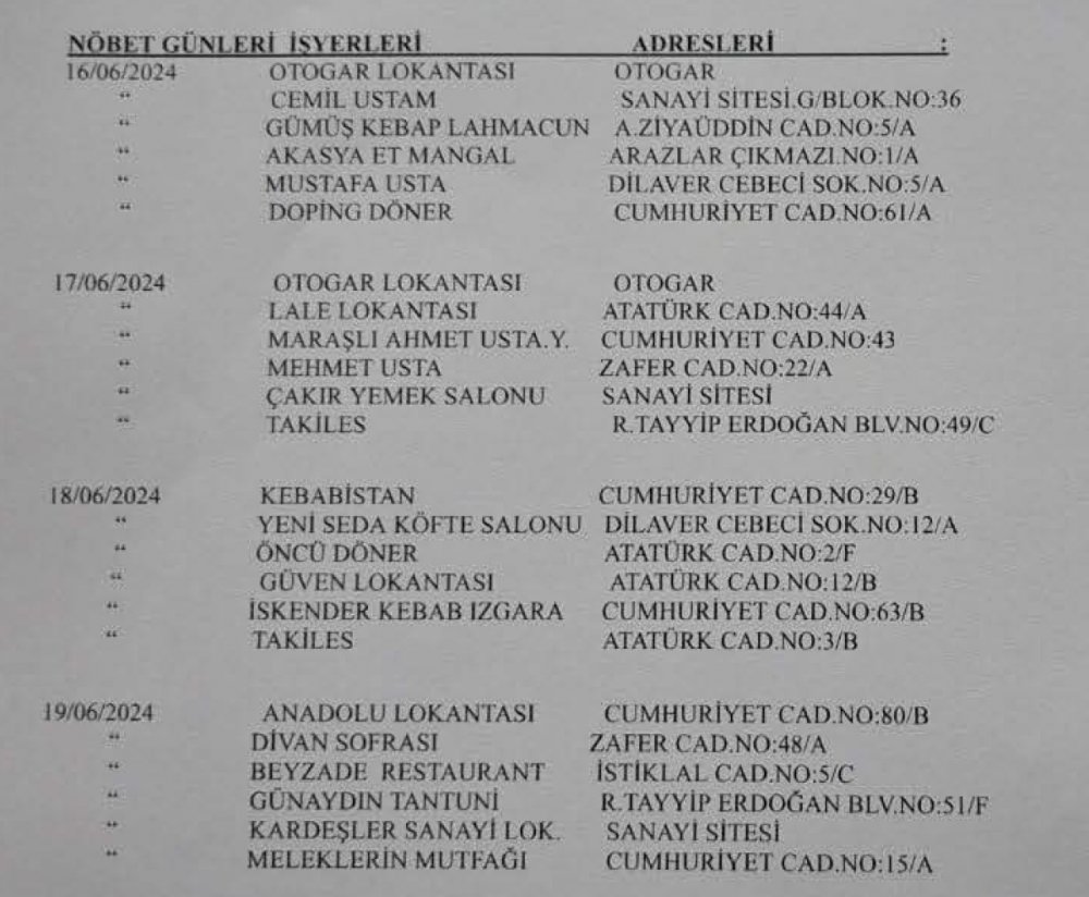İşte Kurban Bayramı tatili süresince nöbetçi lokantalar: