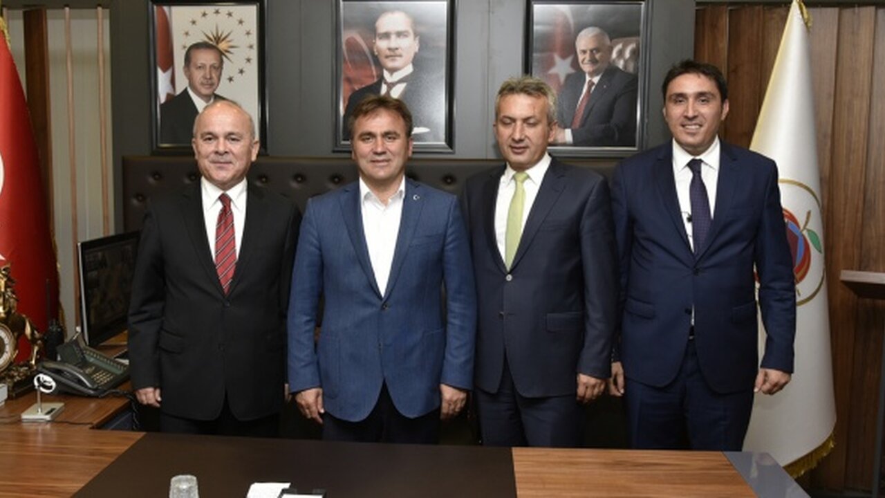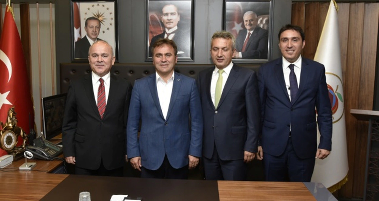 Belediye Başkanı Ercan Çimen, Trabzon Halkbank Bölge Müdürü İsmail Rüştü Atik ve Halkbank Gümüşhane Şube Müdürü Sefa Erden'i makamında kabul ederek, sözleşme imzaladı.